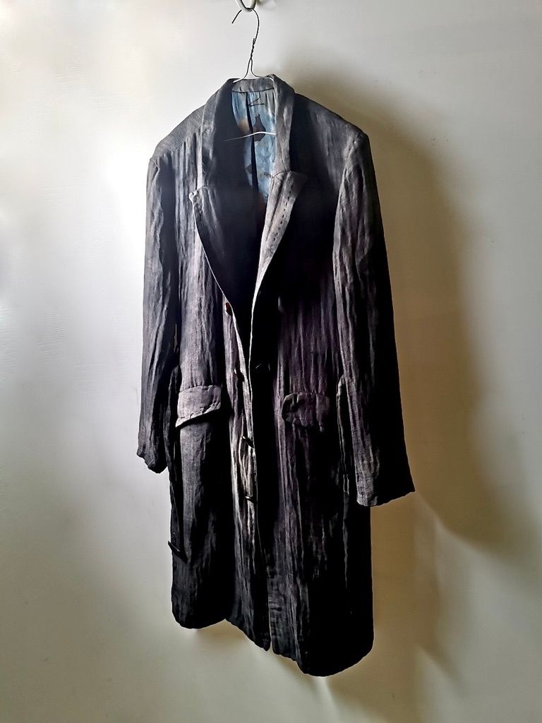 Handmade exclusive GBS Accident Dyed Luigi Parisotto deluxe linen & cotton double-faced cloth single breasted fully-lined peak lapel belted trench coat with pure Como silk linings, extensive silk handstitch detailing, silk handmade buttonholes & Fontana real horn hand dyed buttons. Number produced in the world: 6