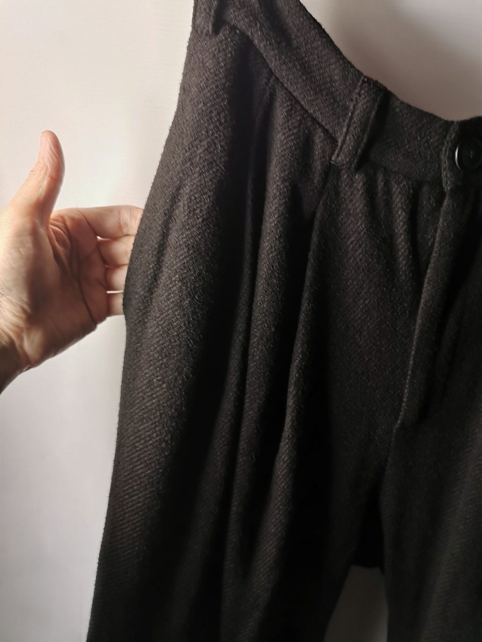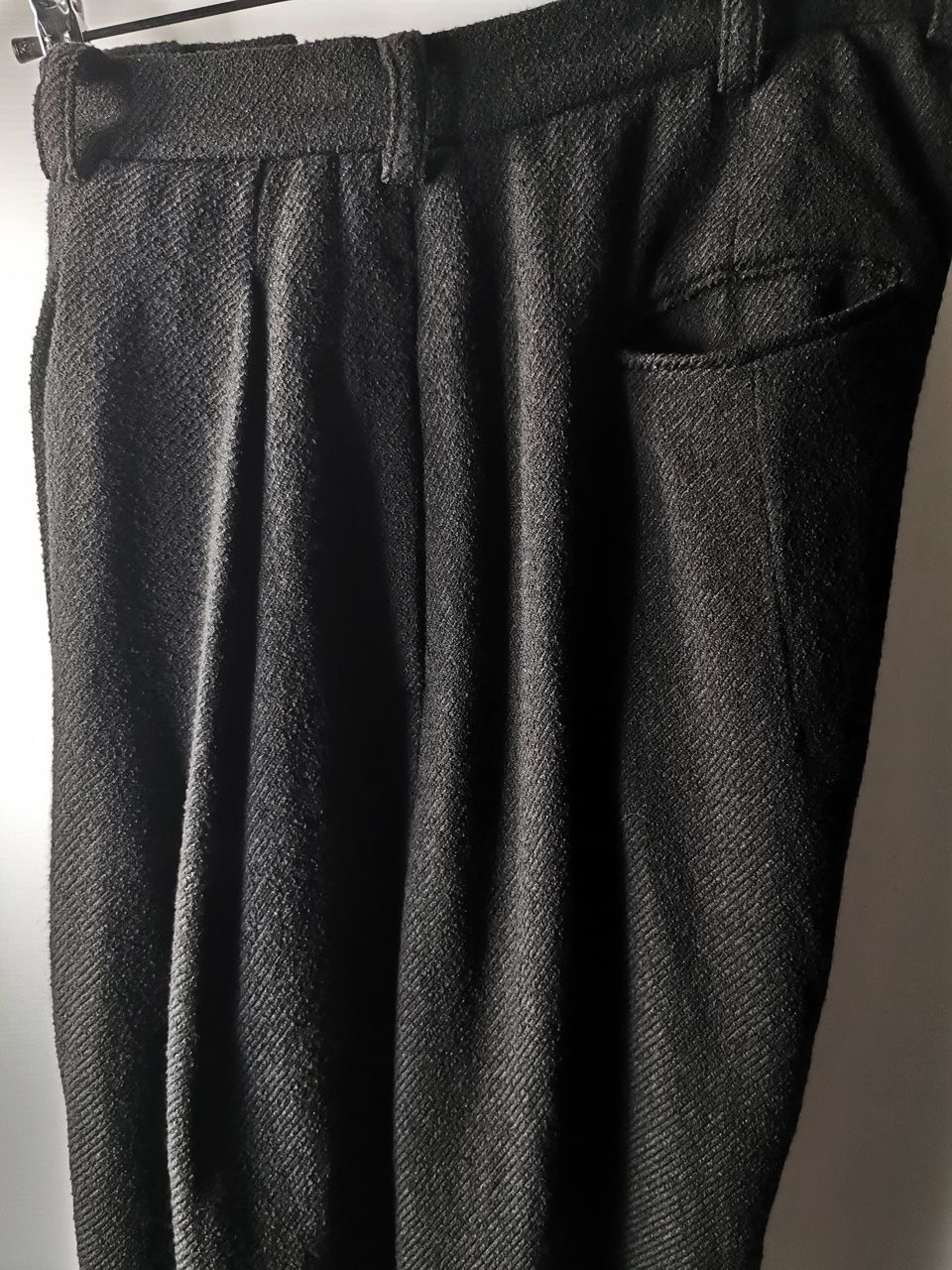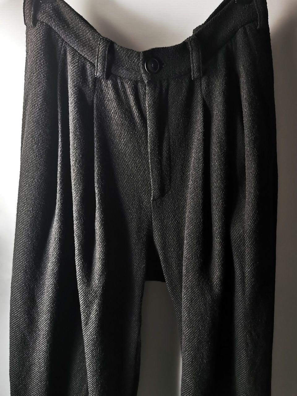 THIS special version of the super limited edition Evolution III For Japan Only CVP18 trouser design is one of only 8 pieces of its kind made by hand in the world, each created exclusively using our exaggerated large volume silhouette, double pleated front trouser pattern developed from our extensive tailoring research using a special textured weave diagonal twill wool woven only for us in Biella, Italy--the world's leading region for fine virgin wool fabric production--combined with pure cupro Bemberg-type linings woven for us by Tessitura Mauri in Como for maximum lightness and comfort--and then specially dyed, washed, shaped and treated by hand in our world-famous GBS Superworkrooms at Cavarzere Venezia using a series of processes which required over 15 hours of expert work to achieve its special colors, patina effects, shaping, drape and softness. The design features all hand tailored fly front, pleating and reinforced besom pocket build, impeccable clean-finished taped seam fully-lined interior construction, uniquely balanced cut, fit and design, special Japanese YKK nickel aluminum zipper made for us in Japan, chosen for maximum strength and style, generous 2.5 centimeter seam allowances for plenty of alteration capability for long-term wear and service, exquisite Italian satin taped hems all completely sewn by hand (not machined), exquisite real horn design buttons created exclusively for us by the world's greatest living buttonmakers--Claudio and Cinzia Fontana in Parma Italy--and our signature real hand sewn buttonholes in luxurious pure silk Bozzolo Milano Seta Reale threads (which required at least 12-14 minutes to create each one). The piece also features our world leading pure silk label created exclusively for us by Mion SpA in Torreglia which is the first label in the luxury industry to completely eliminate plastic polyester yarns in it--beautifully attached entirely by hand using pure silk threads.