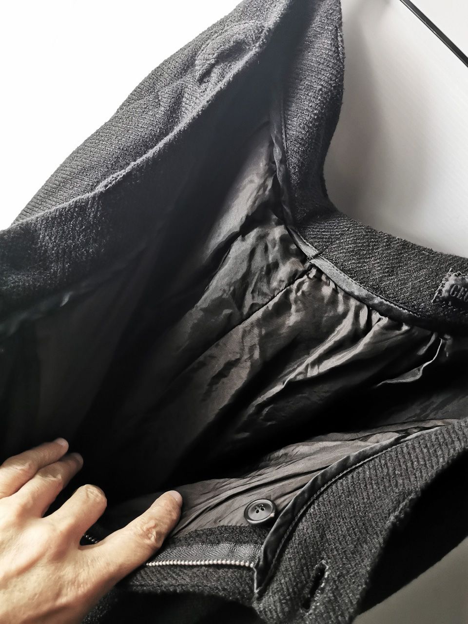 EXCLUSIVE NEW EXAGGERATED VOLUME DESIGN, HAND DYED BIELLA DIAGONAL TEXTURED WOOL TWILL FABRIC WITH PURE CUPRO EMBERG-TYPE LININGS SILK HAND-STITCHED BUTTONHOLES & FONTANA DESIGN REAL HORN BUTTONS