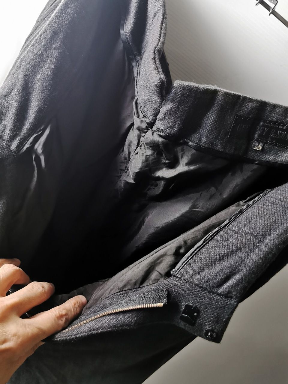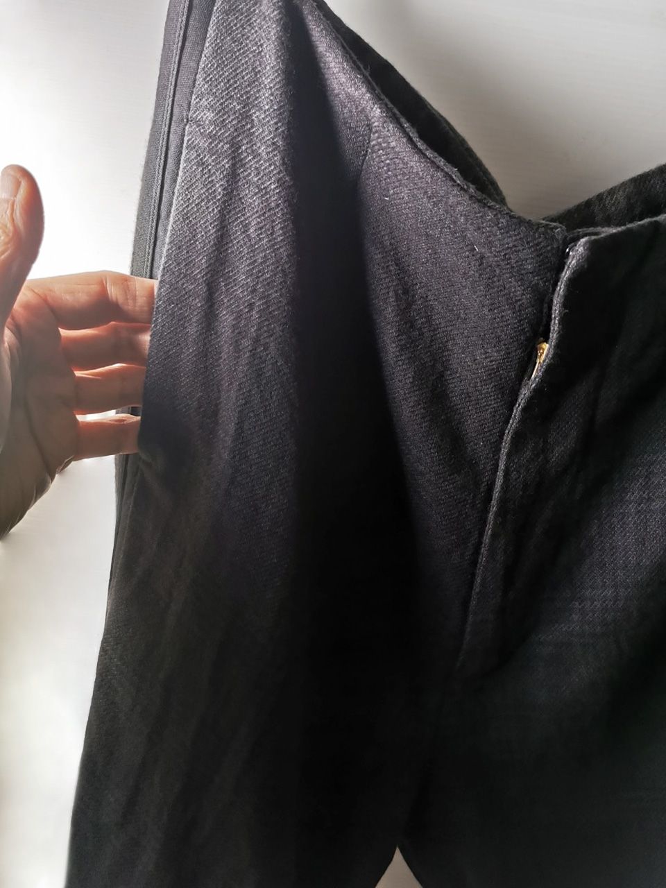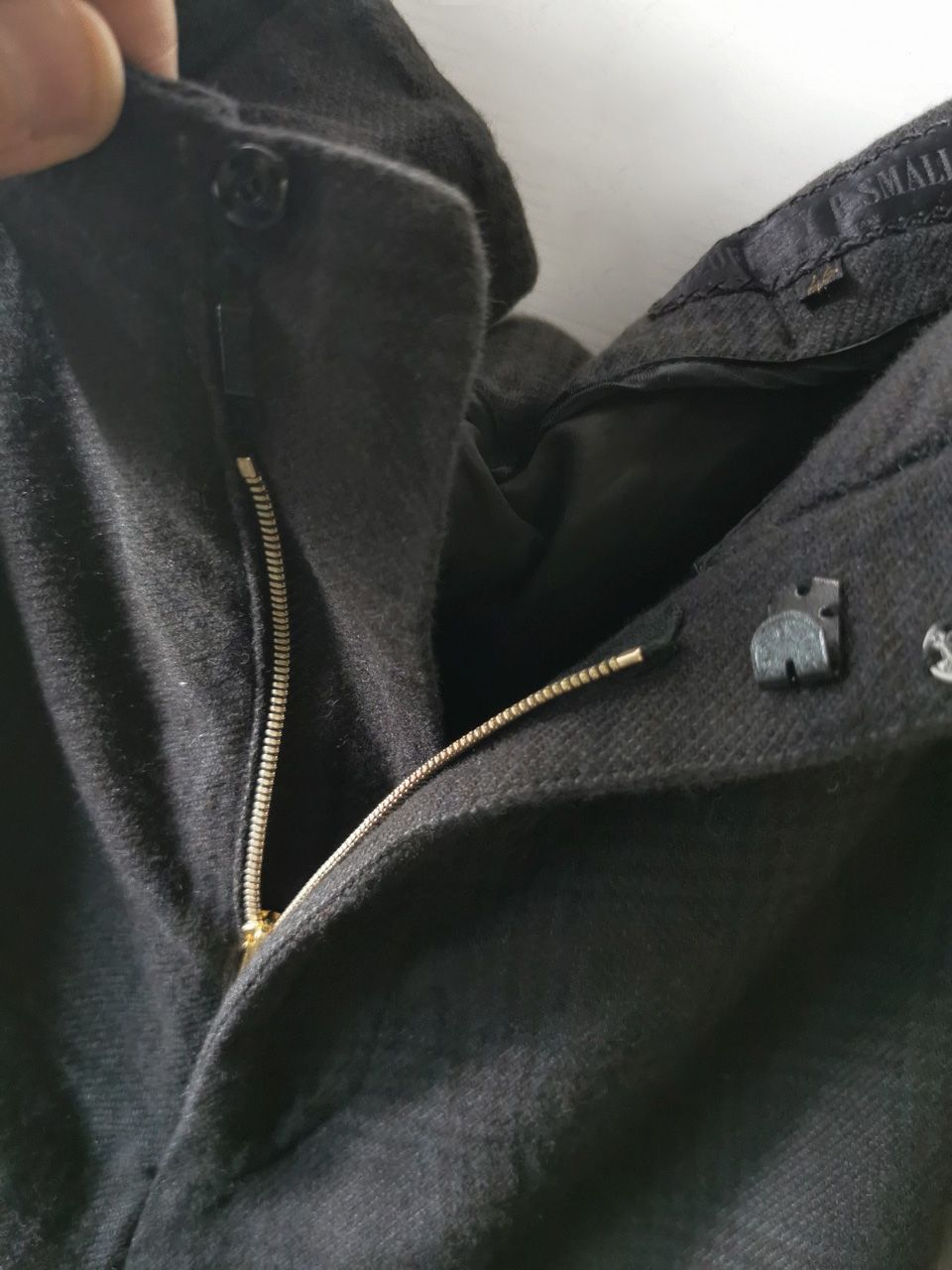 …impeccable top-of-the-line Excella metal zipper made to order for us by YKK’s top world factory in Japan, and exclusive hand-sewn Italian metal hook and eye and automatic fastening closures…