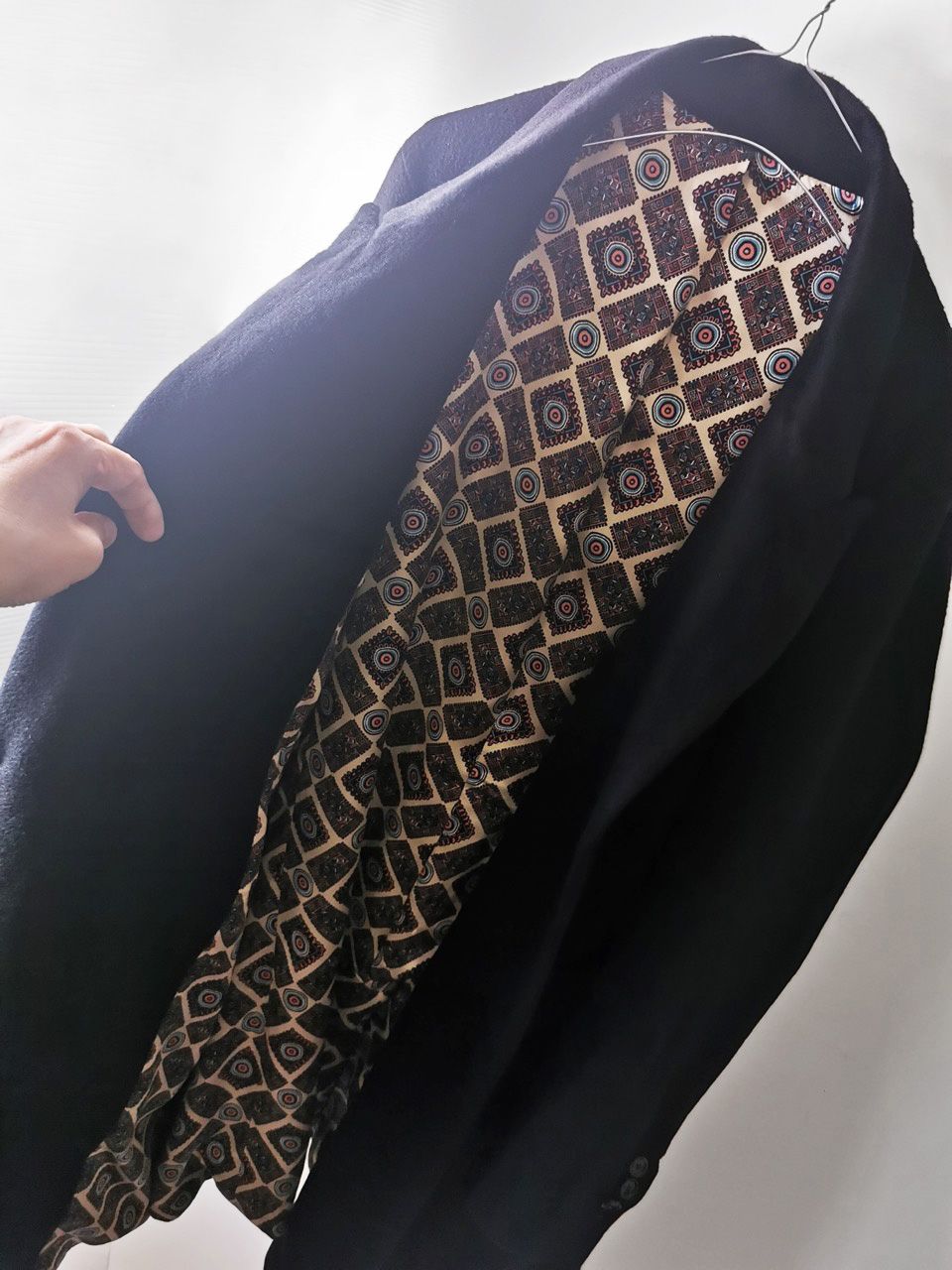 ...the design features real handmade 4-button working buttonhole surgeon’s sleeve cuffs, impeccable handcut welt and besom pockets inside and out fully self-lined in the original precious fabric for maximum comfort and durability...
