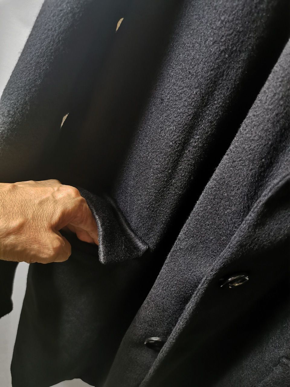 ...beautifully finished fully-lined interior with hand tailored back vent and all handsewn hems and closures, generous 2.5 centimeter seam allowances on major fitting seams which all the coat to be easily altered for longer wear and service...