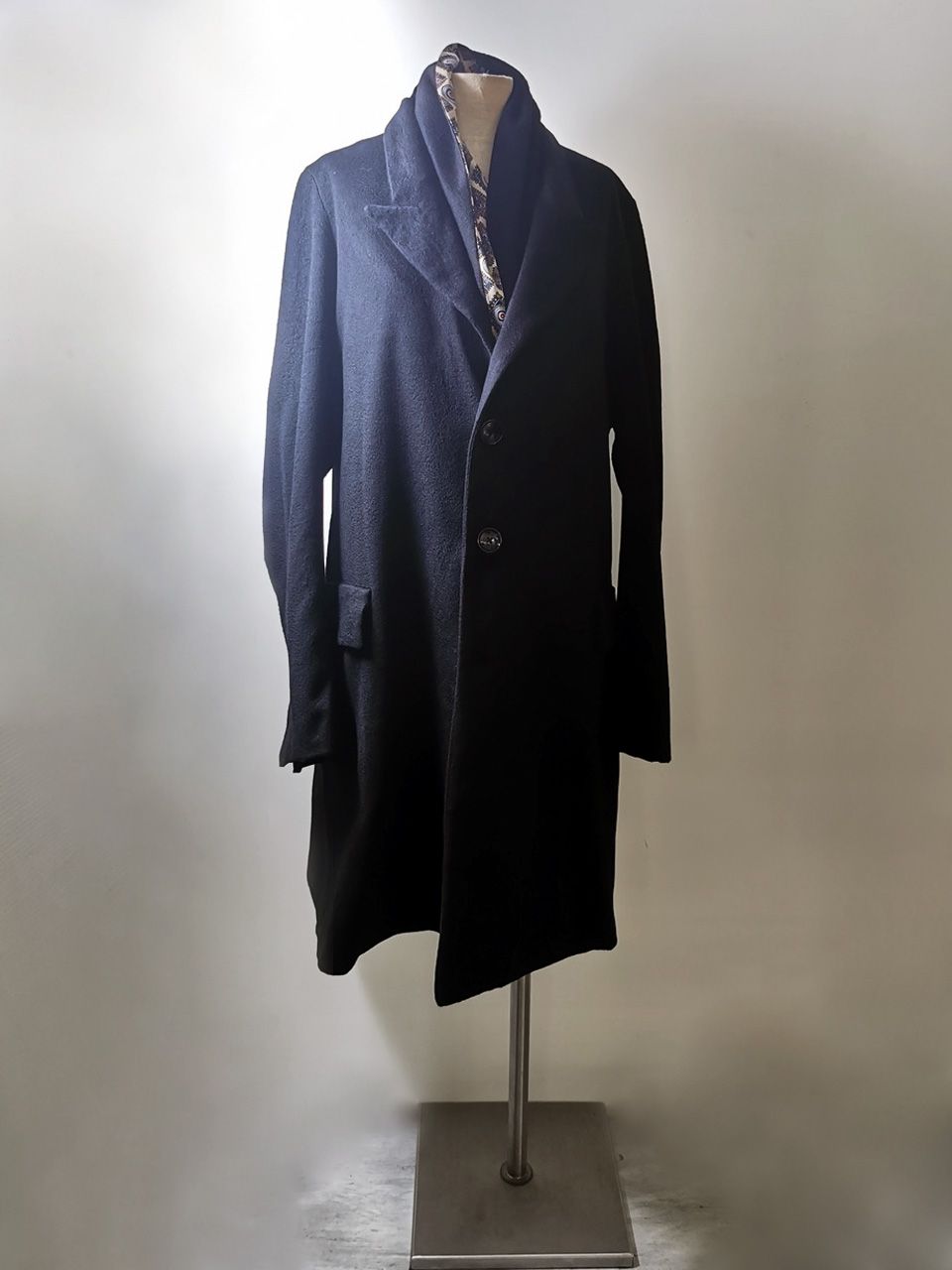 This super limited edition GBS Evolution X EV10C07 supercoat with matching GBS trapezoid scarf is the only piece of its kind made in the entire world exclusively for Ink in Hong Kong. It is not only a serious collector's piece but an extremely elegant, functional and wearable superlux wardrobe investment. Its dramatic historical cut, incredible materials, components, construction and proportions all provide superb ease of movement, comfort and impeccable taste for extensive travel, work and social occasions. Designed and built like no other coat in the world... this GBS EV10C07special1 is a pure Piacenza Alashan cashmere and silk luxury wardrobe investment of superb long-term value.