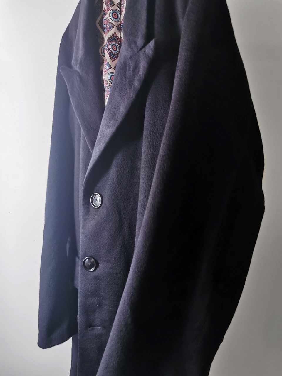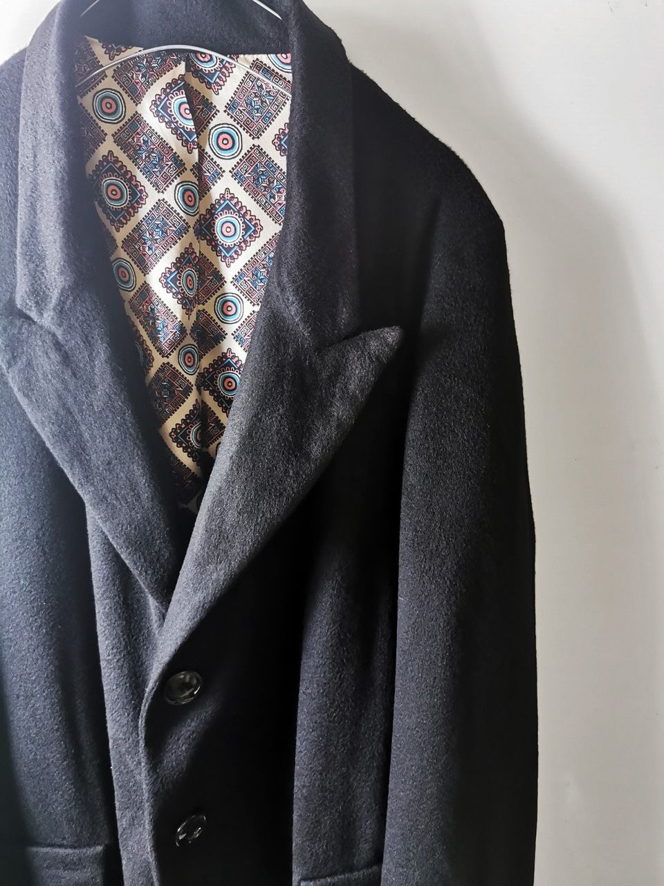 THIS special version of the super limited edition GBS Evolution X EV10C07 supercoat with matching GBS trapezoid scarf is the only piece of its kind currently being made by hand in the entire world. It was created from our original 3-button single breasted peak lapel A-line coat, from our extensive tailoring research, and cut using a superlux ultrasoft pure Alashan Cashmere 2-ply 460 gram per meter coating fabric woven by the oldest woolen mill in the world and the world’s most respected cashmere fabric maker--Fratelli Piacenza 1733 Spa in Pollone Biella, Italy--combined with a special lining story using a pure silk 16 momme raso satin exclusive ornate geometric print design made for us by the legendary Brenna family in Como, Italy--the world’s leading center for fine silk fabric creation--then specially dyed by hand in our world-famous GBS Superworkrooms using a process which required over 8 hours of master work to achieve its spectacular colors, patina effects, shaping, drape and incredible softness. The design features real handmade 4-button working buttonhole surgeon’s sleeve cuffs, impeccable handcut welt and besom pockets inside and out fully self-lined in the original precious fabric for maximum comfort and durability, beautifully finished fully-lined interior with hand tailored back vent and all handsewn hems and closures, generous 2.5 centimeter seam allowances on major fitting seams which all the coat to be easily altered for longer wear and service, extraordinary elegant dark "lucido" gloss-finished real horn buttons made exclusively for us by the world's greatest living buttonmakers--Claudio and Cinzia Fontana in Parma, Italy--and no less than 11 of our signature real hand stitched buttonholes (each one required 10-14 minutes to cut and sew) in pure silk Bozzolo Reale Milano Seta thread. The piece is hand signed and numbered by the designer and also features our world leading pure silk label created exclusively for us by Mion SpA in Torreglia- the first label in the luxury industry to completely eliminate plastic polyester yarns in it which was hand dyed to achieve its stunning color and lustre and exquisitely attached entirely by hand using pure silk threads. Variations in color and color density are not imperfections or irregularities, but specific characteristics of the special fabric and hand making technique. Please treat buttons and buttonholes with care. We recommend professional cleaning or hand wash cold water and protecting buttons with foil or plastic wrap when washing. Do not put in machine washer or dryer, or wash with other items.