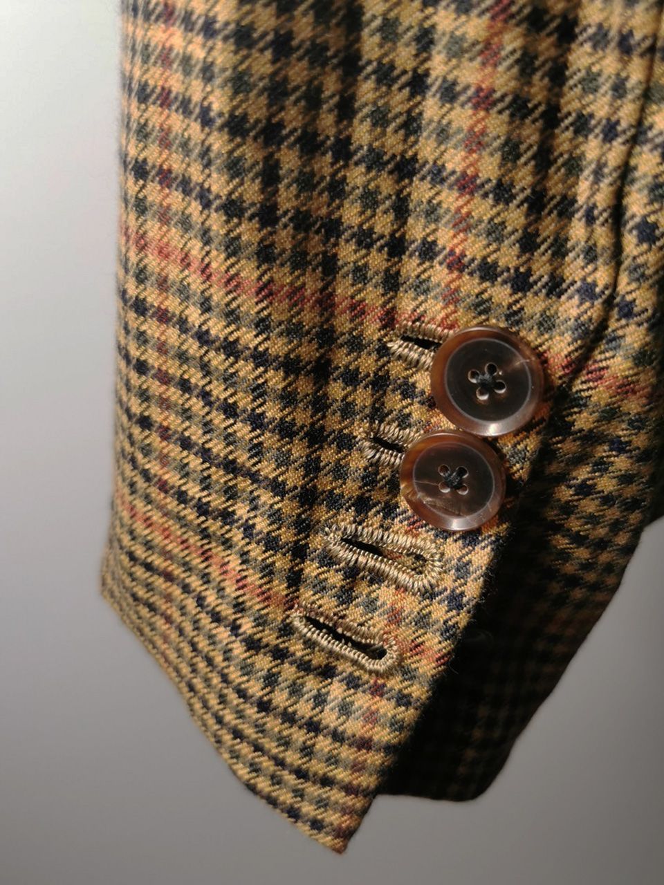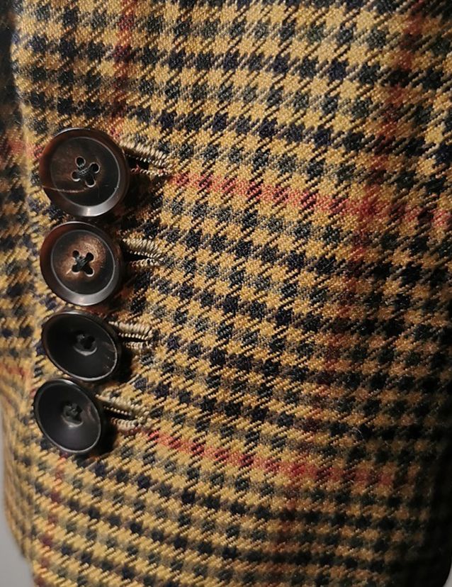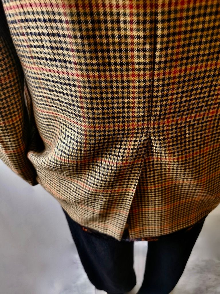 ...all done with impeccably cut and stitched matching plaids throughout and handcut center back vent, generous 2,5 centimeter seam allowances on major fitting seams that allow the jacket to be altered and let out for long-term wear, service and value...
