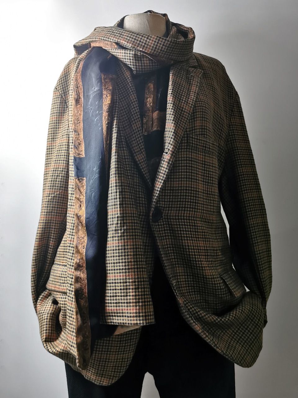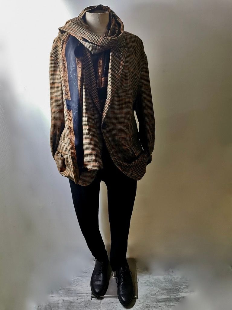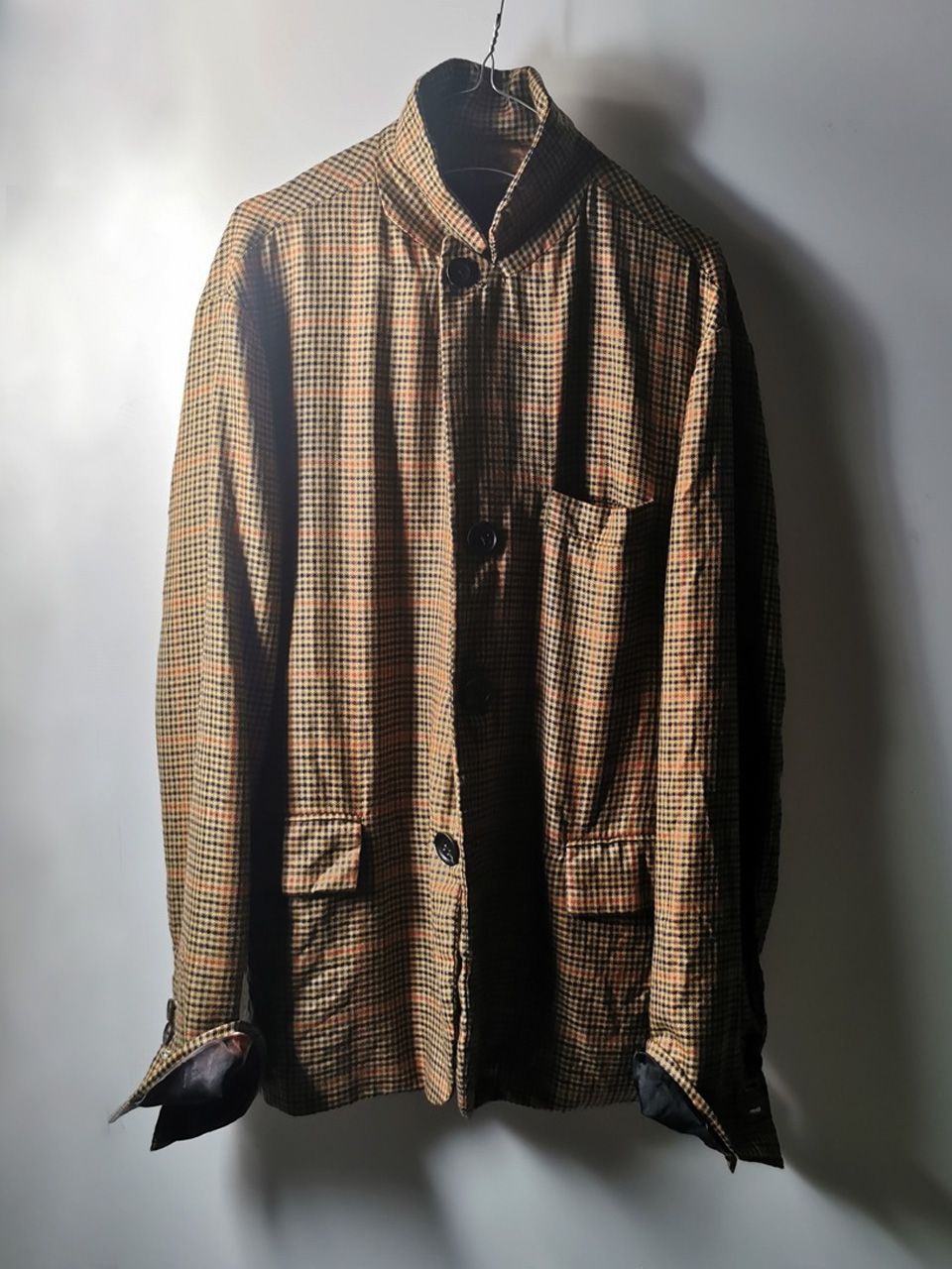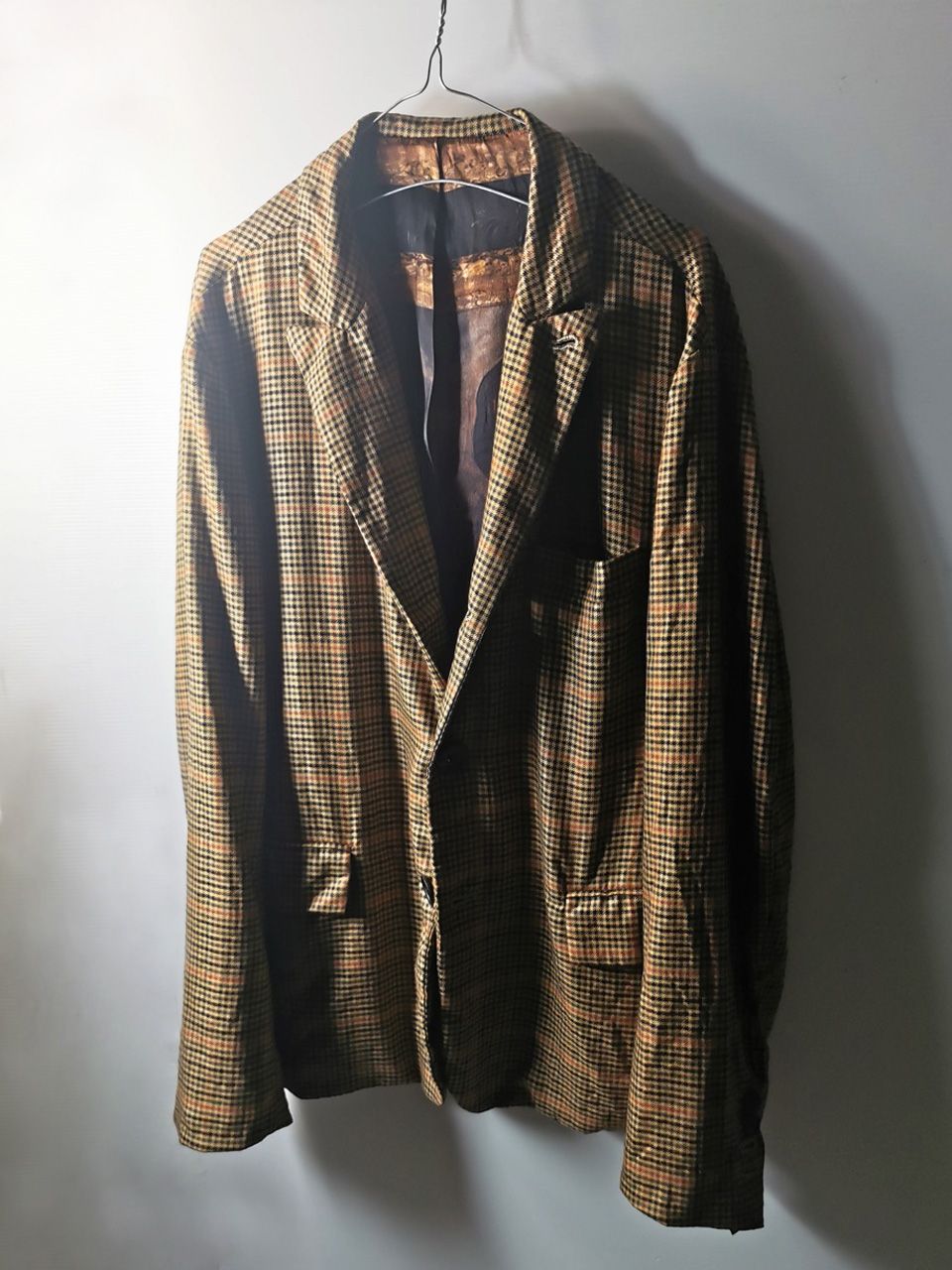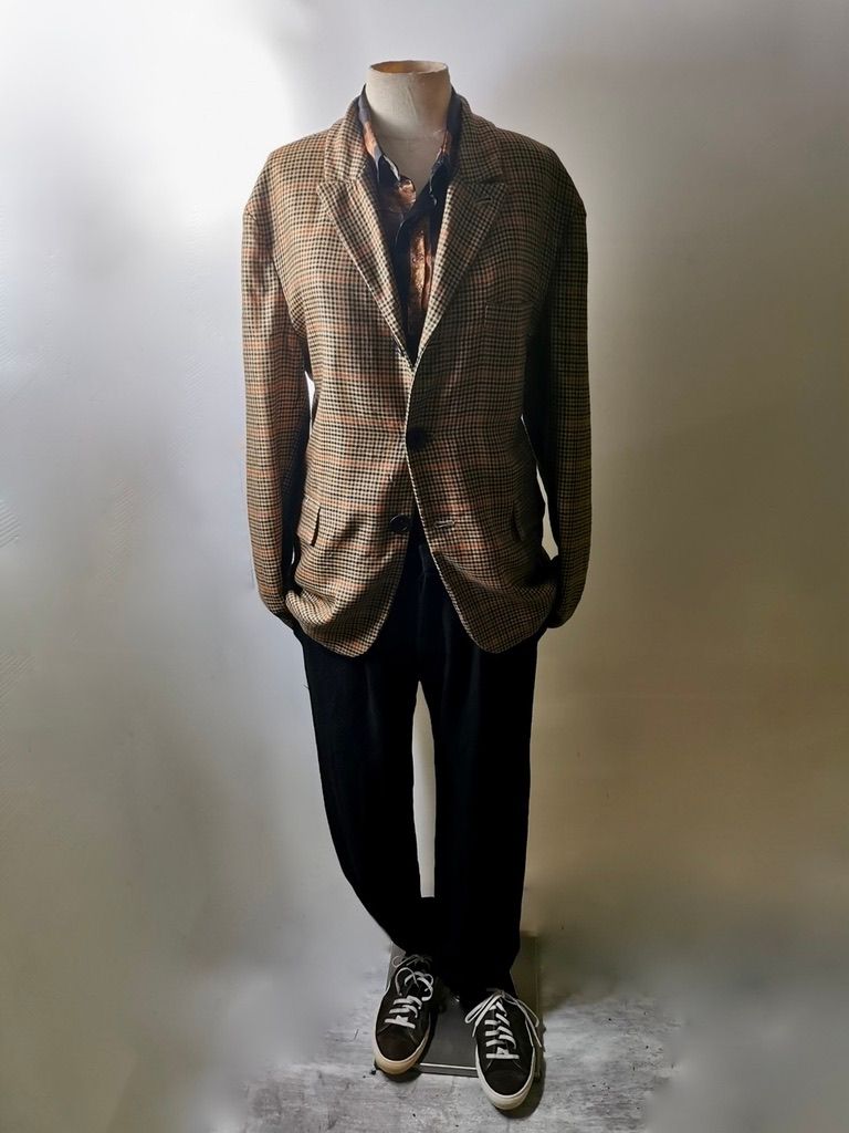 THIS special version of the super limited edition GBS Evolution X EV10J08 hyperlux handmade jacket design is one of only 4 pieces of its kind made by hand in the entire world, using a classic single-breasted 3-button peak-lapel jacket pattern from our extensive tailoring research, and cut using an exclusive hyper luxury pure Alashan worsted Tattersall plaid cashmere fabric woven only for us by the oldest woolen mill and most respected cashmere makers in the world--Fratelli Piacenza 1733 Spa in Pollone Biella, Italy-- then combined with an exquisite lining story of luxurious pure silk 16-momme raso satin exclusive Darklands “Lord Byron” print design composition by Estefania Campillo comprising images of a painting of Lord Byron by the Berlin artist David Nicholson, housed in an original Louis XVI frame from a private collection, and made only for us by the legendary Brenna family in Como, Italy--the world’s leading center for fine silk fabric creation--then individually multiple hand washed, shaped and treated in our world-famous GBS Superworkrooms at Cavarzere Venezia for extra aging, shaping, drape and softness. The design features real handmade working surgeon’s 4-button sleeve cuffs, extraordinary handcut besom flap, welt and interior besom pockets throughout the garment each fully self-lined with the very expensive pure Alashan cashmere cloth for incredible comfort, security and durability; impeccably cut and stitched matching plaids throughout and handcut center back vent, generous 2,5 centimeter seam allowances on major fitting seams that allow the jacket to be altered and let out for long-term wear and value, a remarkable composition of hand-sewn real horn button designs made exclusively for us by the world’s greatest living buttonmakers--Claudio and Cinzia Fontana in Parma, Italy--and no less than 12 of our signature real hand-stitched buttonholes in pure silk Bozzolo Reale Milano Seta threads which required at least 12-14 minutes to create each one (over 2 hours of painstaking expert work just to make the buttonholes alone for a single jacket). The piece also features our world leading pure silk label created exclusively for us by Mion SpA in Torreglia which is the first label in the luxury industry to completely eliminate plastic polyester yarns in it--beautifully attached entirely by hand with pure silk threads.