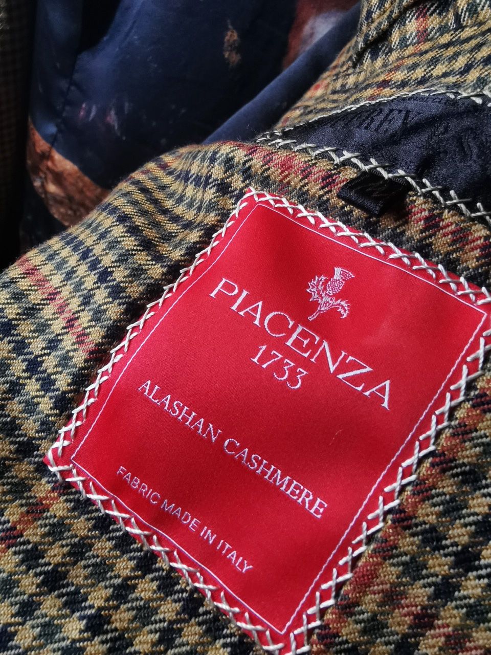 ...and cut using an exclusive hyper luxury pure Alashan worsted Tattersall plaid cashmere fabric woven only for us by the oldest woolen mill and most respected cashmere makers in the world--Fratelli Piacenza 1733 Spa in Pollone Biella, Italy...