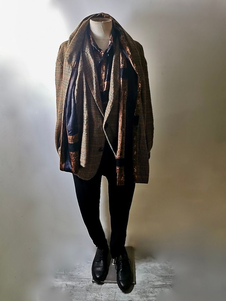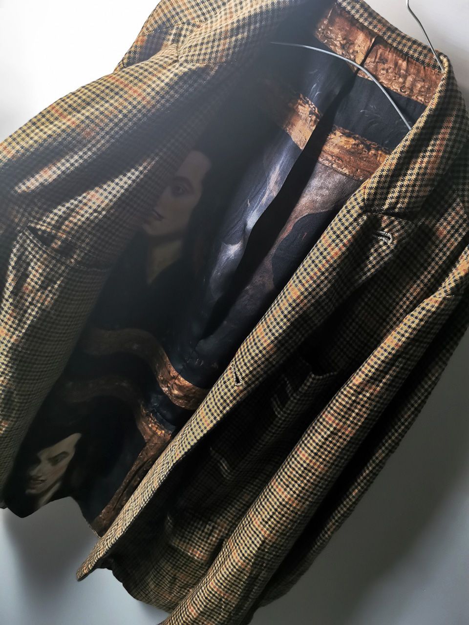 ...combined with an exquisite lining story of luxurious pure silk 16-momme raso satin exclusive Darklands “Lord Byron” print design composition by Estefania Campillo comprising images of a painting of Lord Byron by the Berlin artist David Nicholson, housed in an original Louis XVI frame from a private collection, and made only for us by the legendary Brenna family in Como, Italy--the world’s leading center for fine silk fabric creation--then individually and specially washed, shaped and treated by hand in our world-famous GBS Superworkrooms at Cavarzere Venezia for extra aging, shaping, drape and incredible softness...