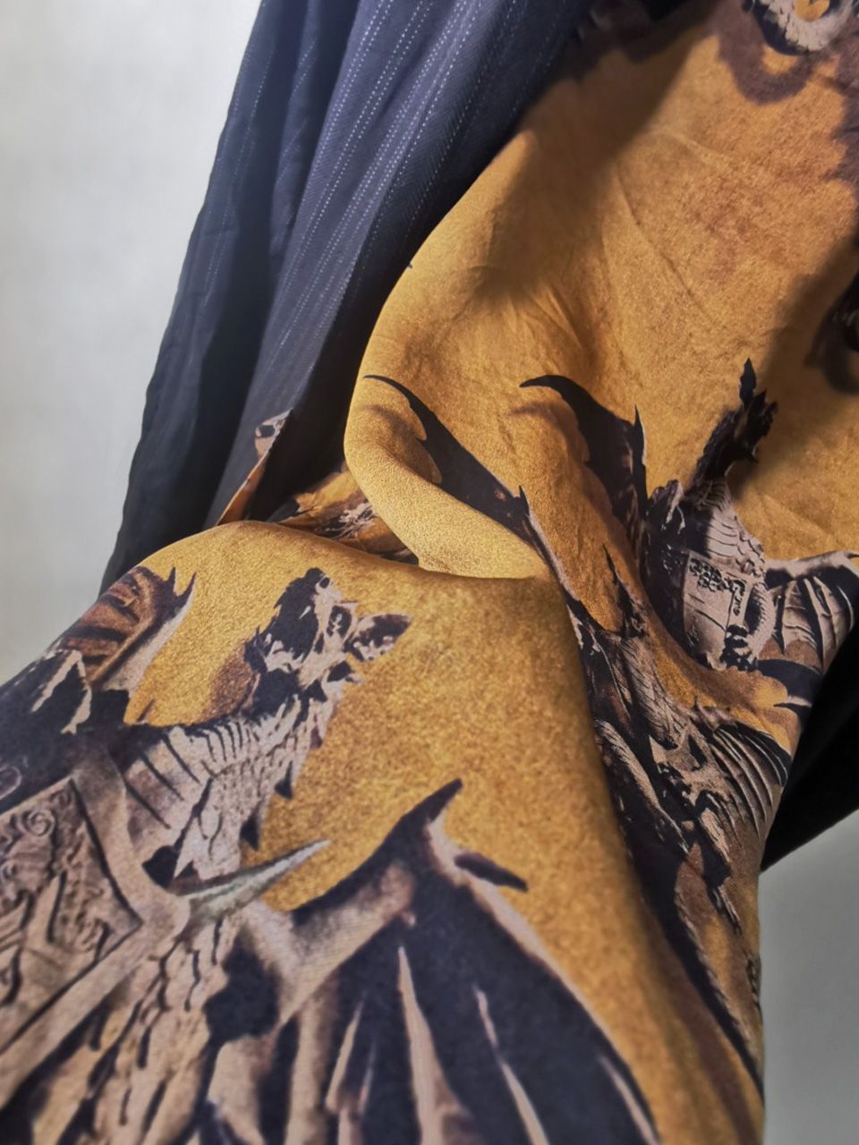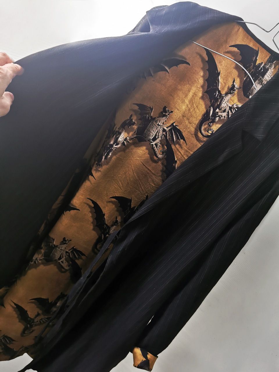 EXCLUSIVE REVERSIBLE “2-IN-1” DESIGN HAND WASHED SUPERLUX LUIGI PARISOTTO SILK & WOOL SUITING CLOTH WITH EXCLUSIVE DARKLANDS “GRYPHONS” SUPERLUX PURE COMO SILK LINING STORY