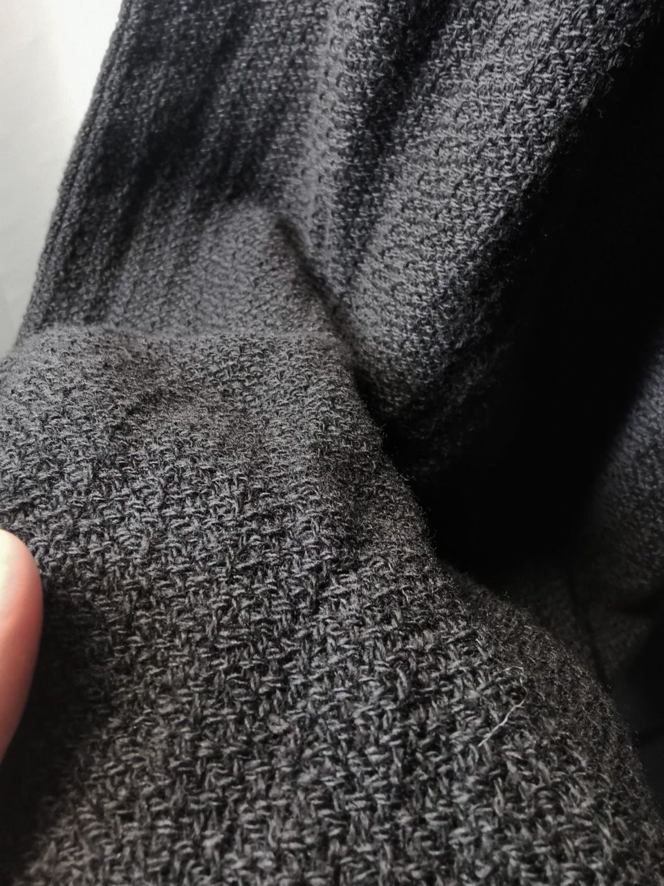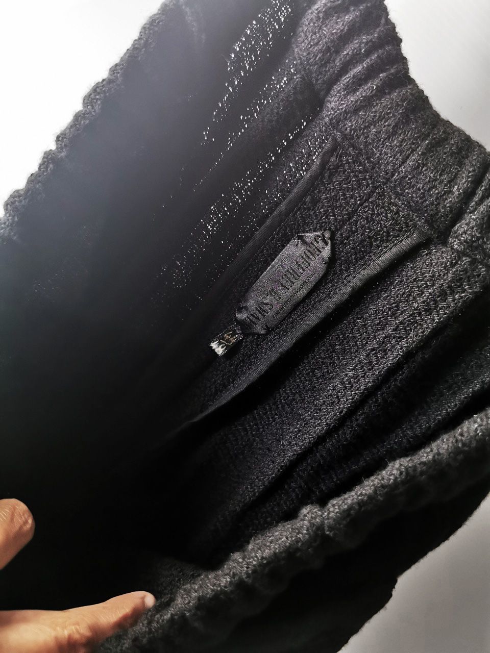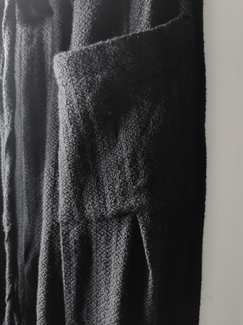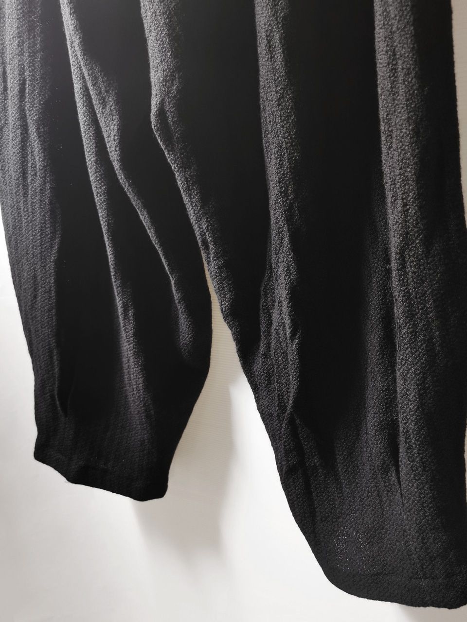 THIS super limited edition GBS Evolution X EV10WP13 handmade trouser design is one of only 4 pieces of its kind currently being made by hand for the entire world, each exclusively from an advanced all-new front and back double-pleated exaggerated volume elastic waist drawstring trouser pattern from our extensive tailoring research, and cut in a new all handwoven "Tosco Lana" pure wool fabric created exclusively for us by the master weaver Carlo Colombo on the 18th century wooden hand looms of Tessitura La Colombina in Badoere di Morgano, Italy---then specially dyed by hand in our our world-famous GBS Superworkrooms at Cavarzere Venezia using a special process which required over 8 hours of painstaking expert work to achieve its special colors, patina effects, shaping, fluid drape and softness. The design features architectural pleating specially placed at 12 different points in tandem with 2 squared-form front patch pockets to achieve a totally innovative new shape and silhouette with extraordinary comfort and ease of wear, expert single-needle stitched tailoring throughout, beautifully finished interior taped seam finishing, drawstrings with handcut vintage Italian leather detail tabs, special pure linen herringbone weave taped hemlines, generous 2,5 centimeter seam allowances on major fitting seams that allow the trouser to be altered and let out, and our world leading pure silk hand dyed label created exclusively for us by Mion SpA in Torreglia which is the first label in the luxury industry to completely eliminate plastic polyester yarns in it–-beautifully attached entirely by hand using pure silk threads.