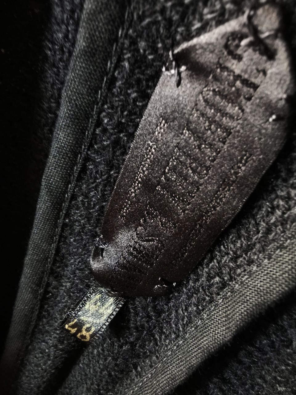 ...and our world leading pure silk hand dyed label created exclusively for us by Mion SpA in Torreglia which is the first label in the luxury industry to completely eliminate plastic polyester yarns in it–-beautifully attached entirely by hand using pure silk threads...