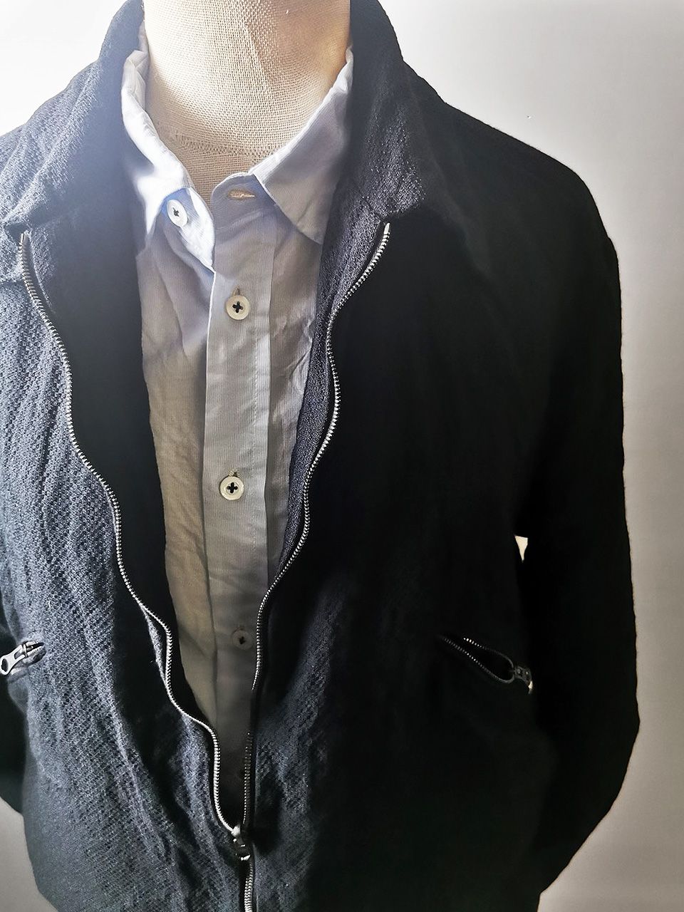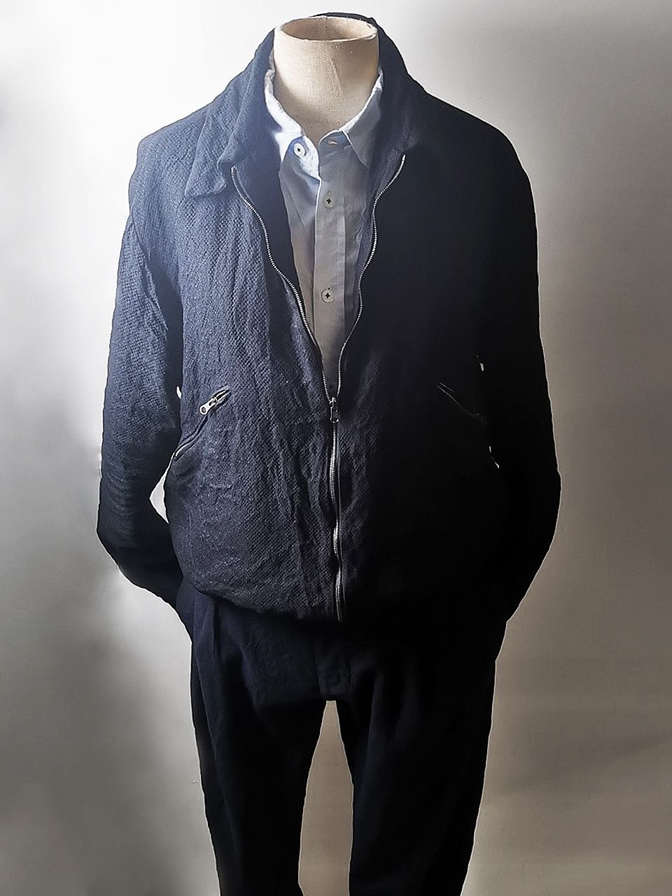 The special version of the design features a clean minimalist blouson styling with no waistband and a true 2-in-1 reversible convertible design thanks to its beautiful clean-finished fully-lined interior construction and generous 2.5 centimeter seam allowances on major fitting seams which allow the jacket to be easily altered for long term wear and service...