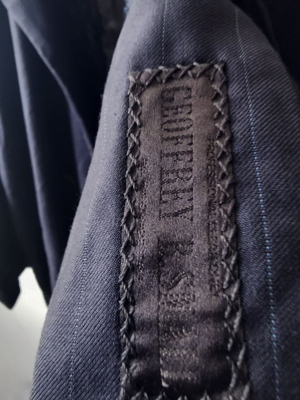 ...combined with an exquisite GBS hand accident dyed lining composition story of hand cut jacquard viscosa luxury lining and pure cupro sleeve lining fabrics woven by Ezio Ghiringhelli in Varese, and individually specially multiple hand accident dyed, washed and treated in our world-famous GBS Superworkrooms using a series of complex proprietary processes that required over 17 hours of expert work for the single piece to achieve its special lining colors, patina effects, shaping drape and softness...