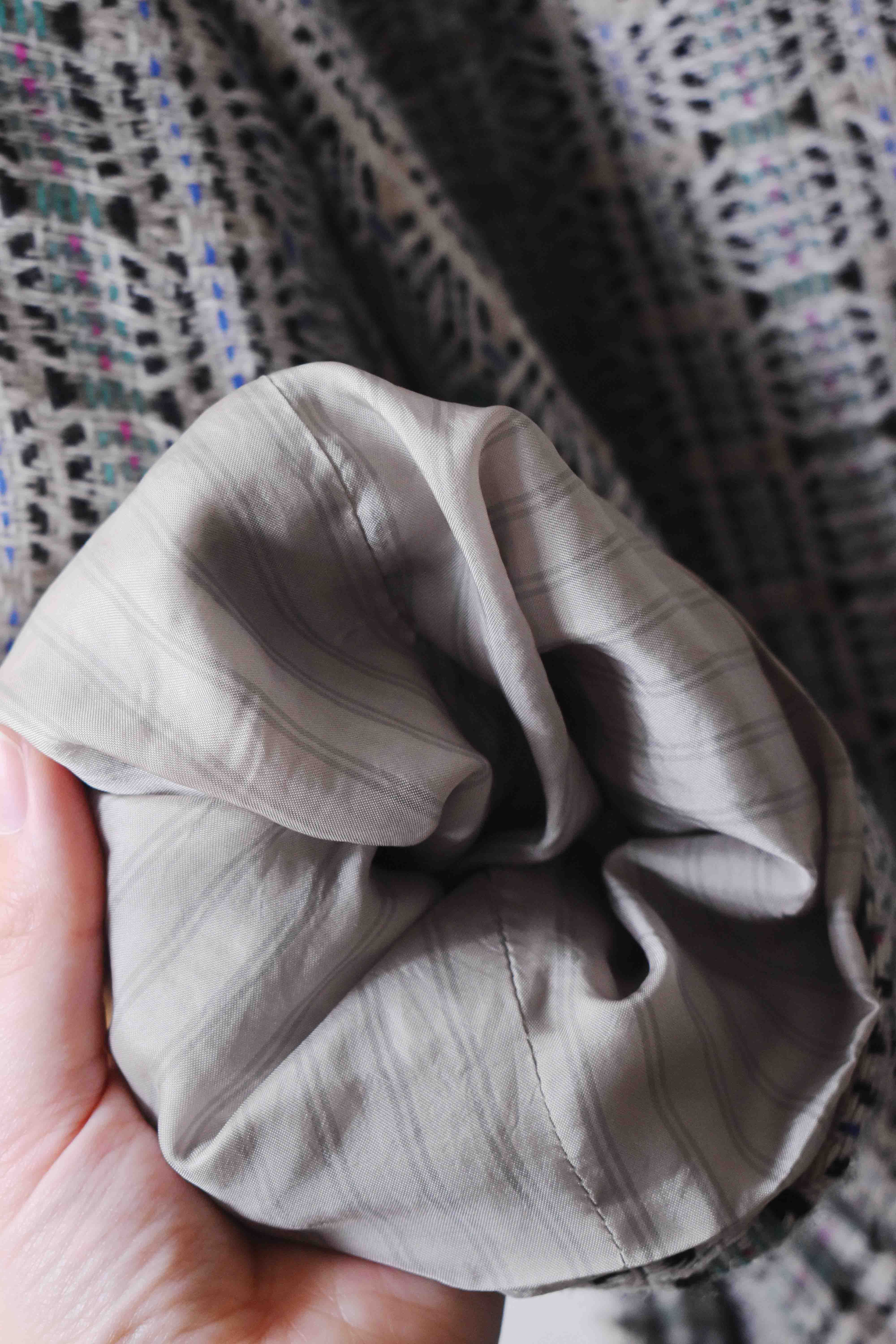 The piece also features our world leading pure silk label created exclusively for us by Mion SpA in Torreglia which is the first label in the luxury industry to completely eliminate plastic polyester yarns in it- beautifully attached entirely by hand with pure silk threads.