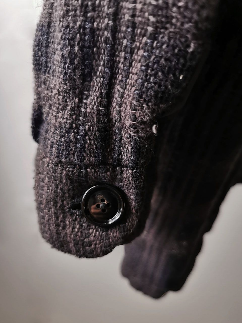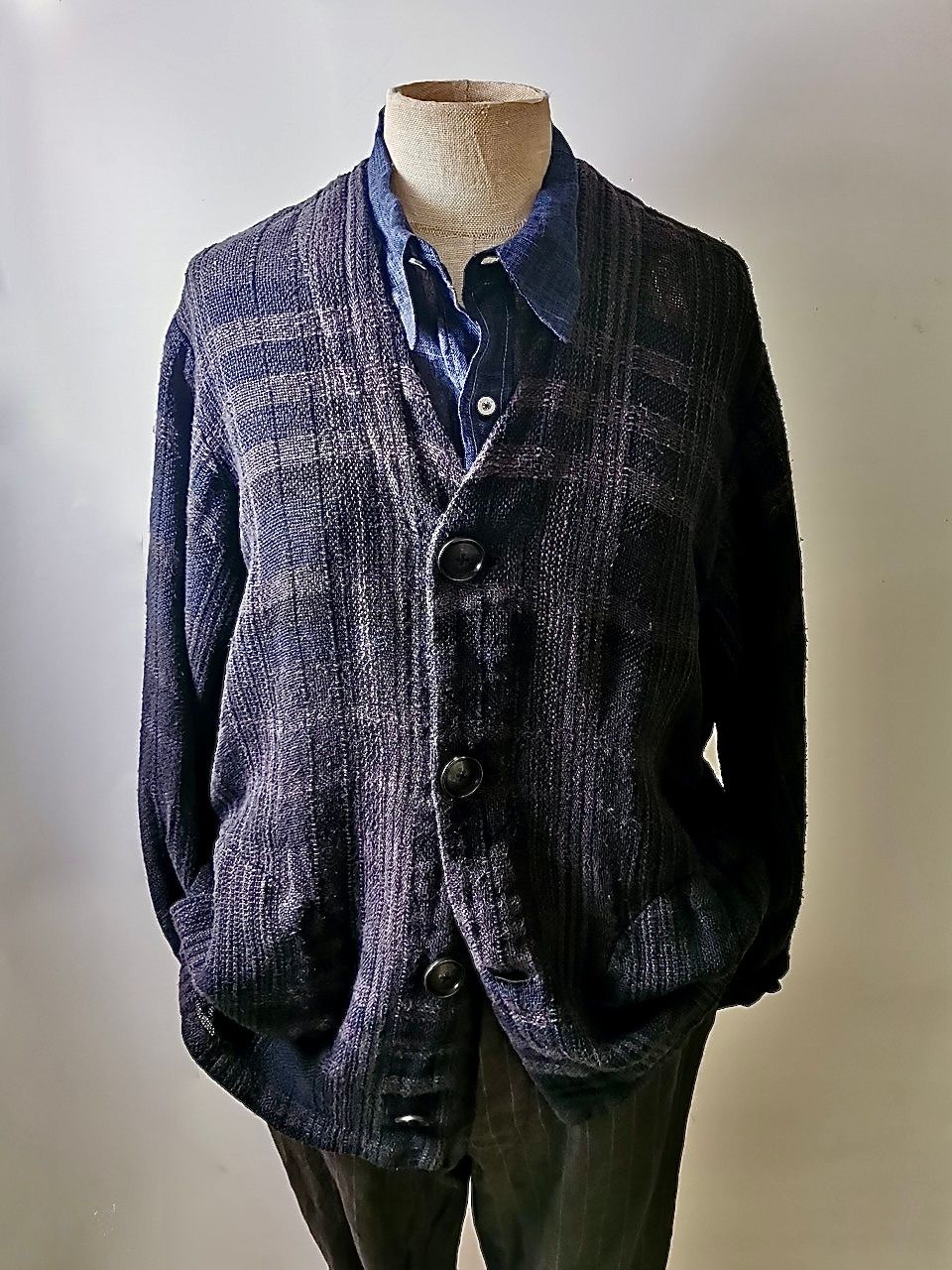This amazing handmade 4-button handwoven cardigan jacket is both a pure GBS collector's design piece and an extremely versatile advanced design superlux wardrobe investment. Its classic design, incredible handmade materials, components, construction provide superb comfort, ease of movement, and can be worn by men and women in a wide range of ways for travel, work and social occasions. Designed and built like no other cardigan in the world... a wardrobe investment of unquestionable long-term value.