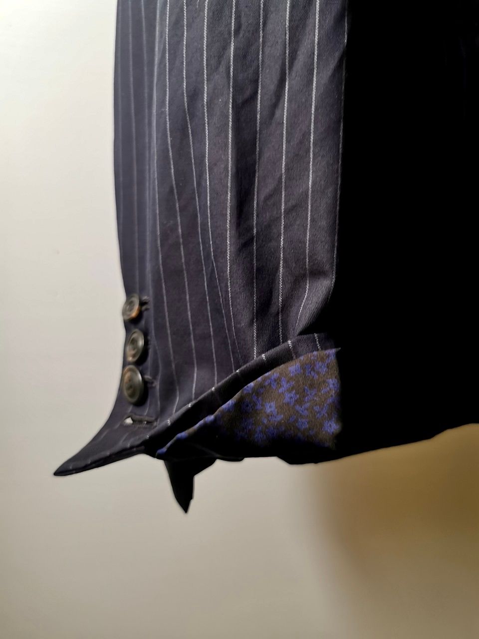 Put your hands in any one of the no less than 11 all hand-built pockets of this GBS supersuit and you’ll feel the difference immediately. The all hand cut tailored front besom flap and welt pockets and interior besom pockets required between 20 -30 minutes to expertly constuct each one, and are all fully self-lined in the extremely expensive pure hyperlux Super 210's "Arcadia 13-micron wool suiting fabric instead of skimping and using cheaper pocket lining materials like other luxury brands do. This long-time value approach to maximum comfort costs more as it uses more of the precious fabric but results in incredibly soft comfort for you when you put your hands in the pockets of this suit. It can actually help reduce your stress and is part of the wonderful feel and experience of wearing the suit...