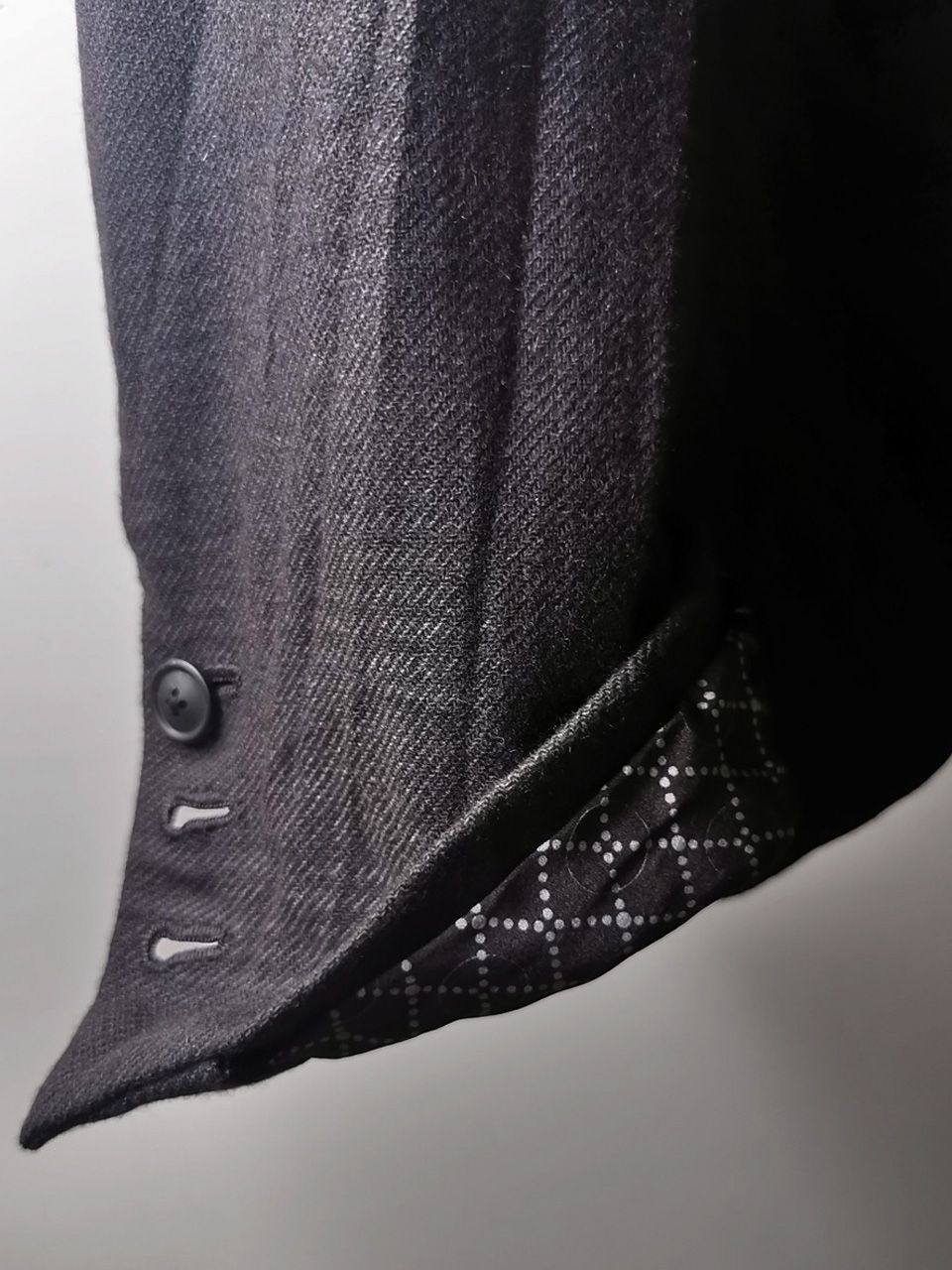 —a long running “code” symbol of jackets and coats made only for elite wardrobes… due to the rare and extreme sartorial skill sets and precision required to create them (there are very few tailors or brands left in the world who have the skill levels and know how to execute them, and their work is expensive)—come standard on the NNJ05 with a classic 3-button array impeccably executed allowing you to unbutton and roll up your sleeves for work, play or just quietly showing off a little.