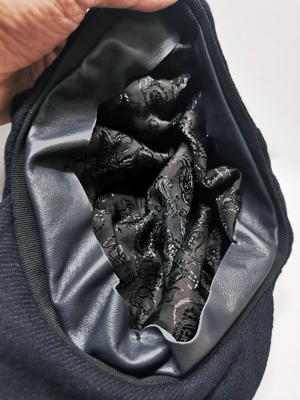 …combined with an exquisite deluxe jacquard paisley weave luxury viscosa lining story woven by Ezio Ghiringhelli in Varese--.all specially multiple hand-dyed, washed and treated in our world-famous GBS Superworkrooms at Cavarzere Venezia using a series of processes that required over 10 hours of master work to achieve its special colors, patina effects, shaping, and incredible softness and drape.