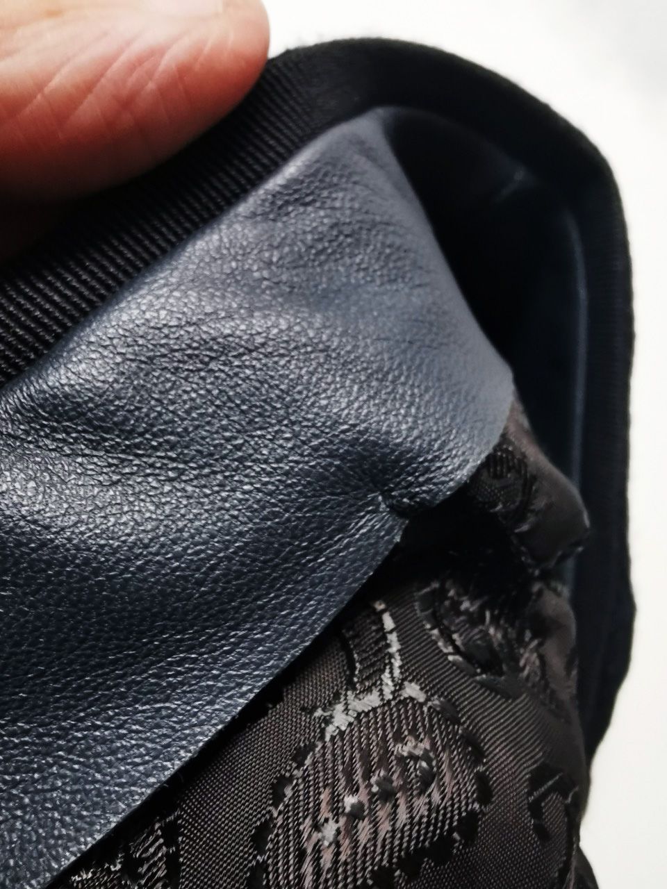 The design features hand-cut authentic recycle vintage garment leather headband and Italian “automatica” metal-press closure all sewn on by hand for extra strength and personal quality…