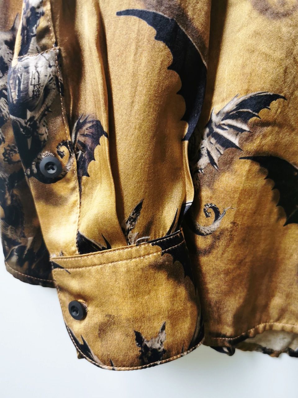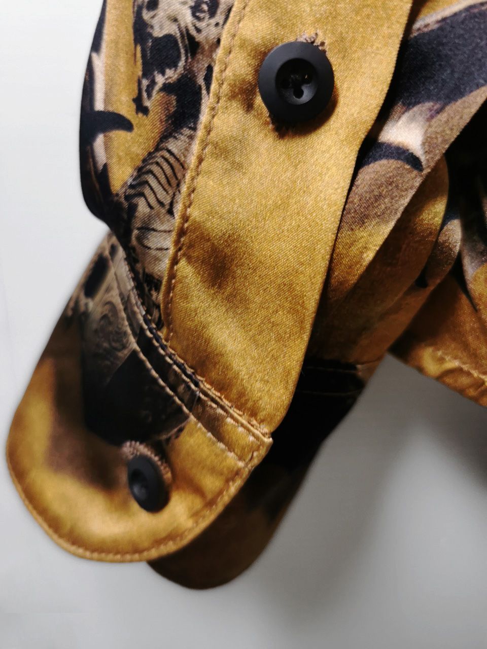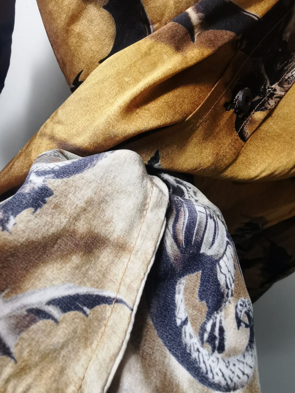 SPECIAL HAND WASHED EXCLUSIVE DARKLANDS BERLIN “GRYPHONS” SUPERLUX PURE COMO SILK PRINT FABRIC, WITH SILK HAND-STITCHED BUTTONHOLES & FONTANA REAL HORN SHIRT BUTTONS