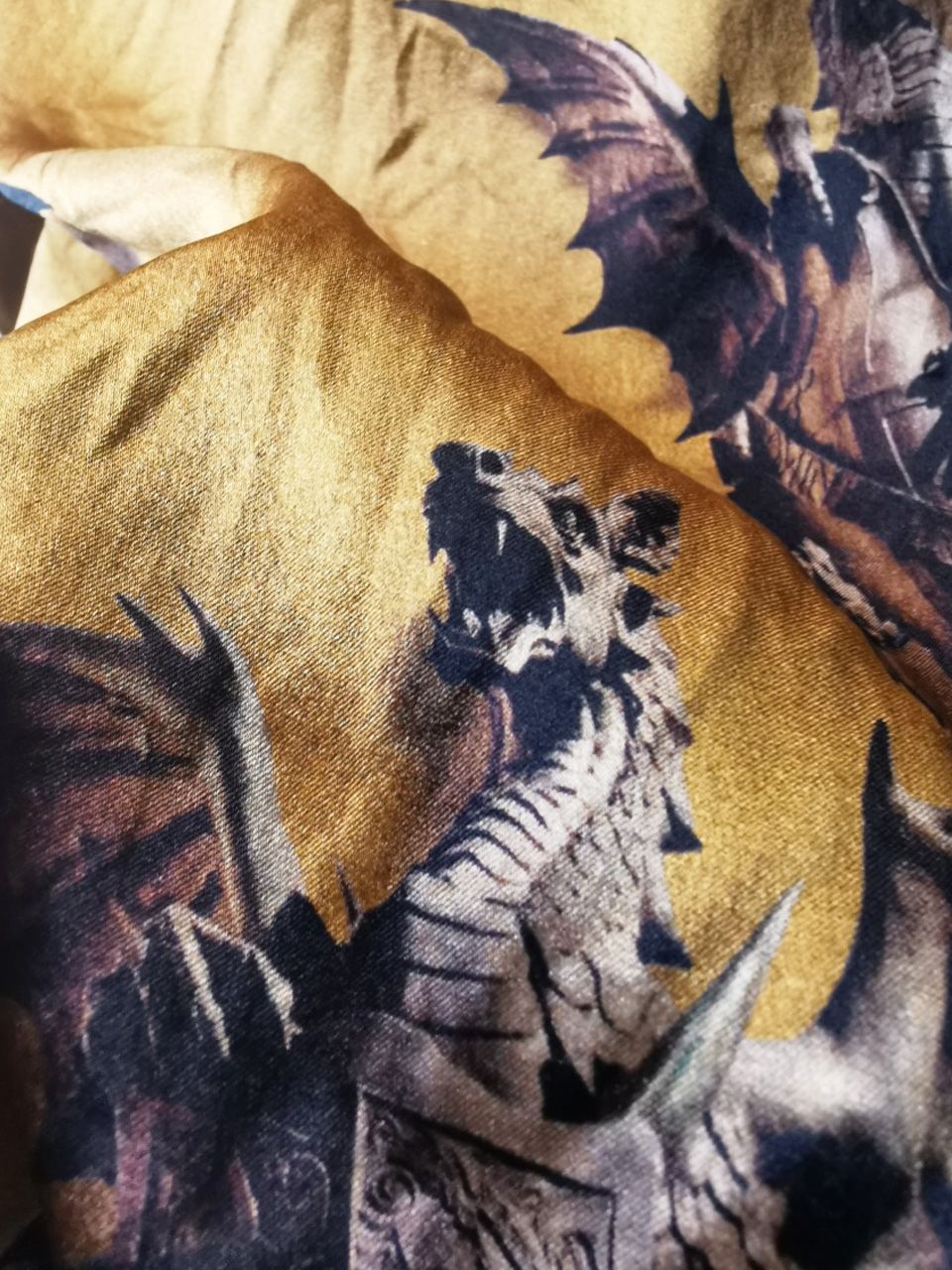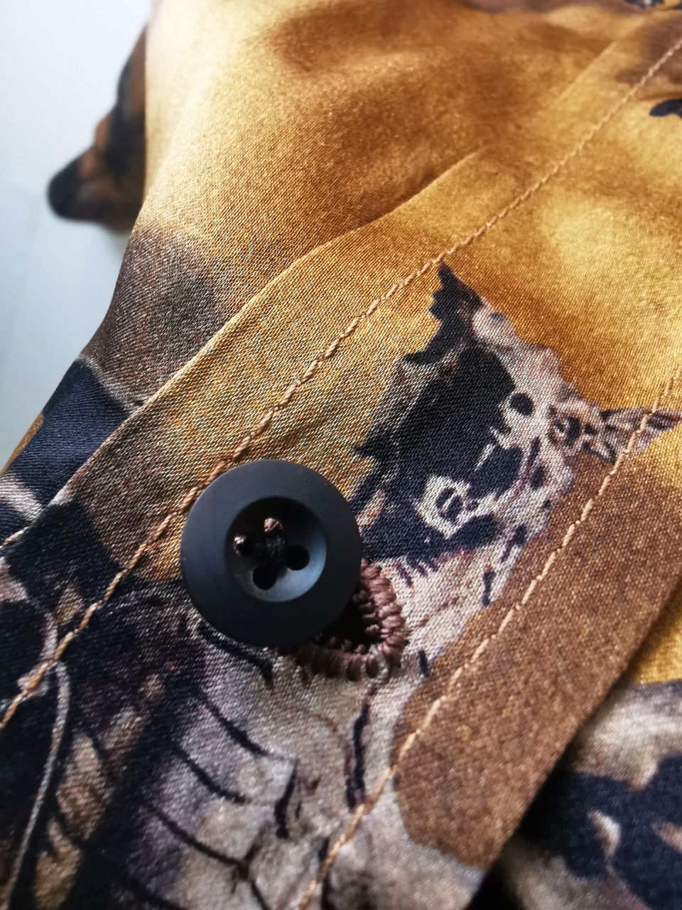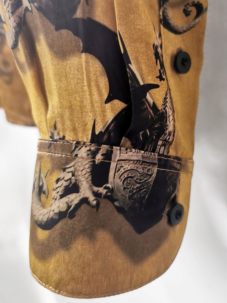 SPECIAL HAND WASHED EXCLUSIVE DARKLANDS BERLIN “GRYPHONS” SUPERLUX PURE COMO SILK PRINT FABRIC, WITH SILK HAND-STITCHED BUTTONHOLES & FONTANA REAL HORN SHIRT BUTTONS