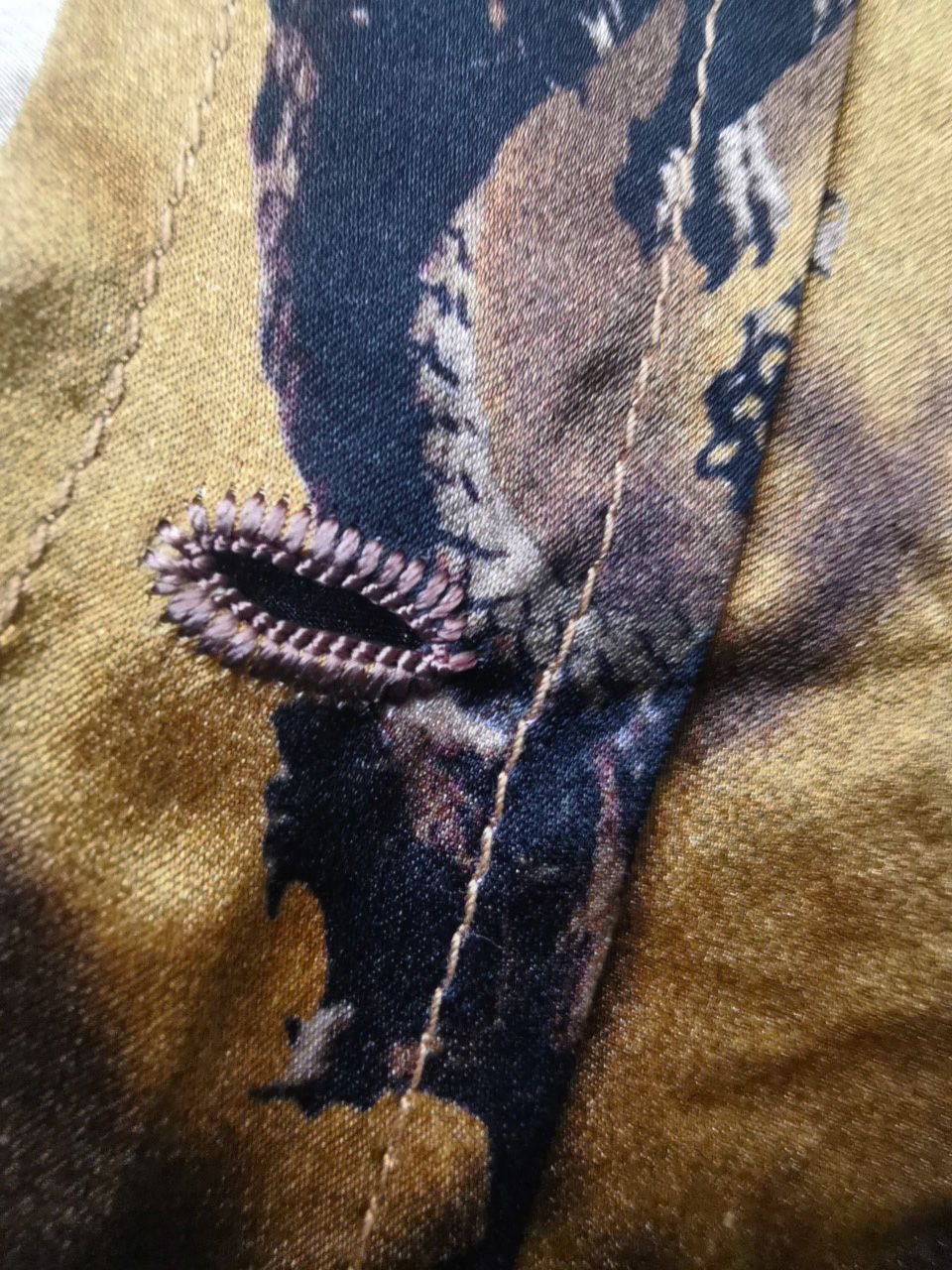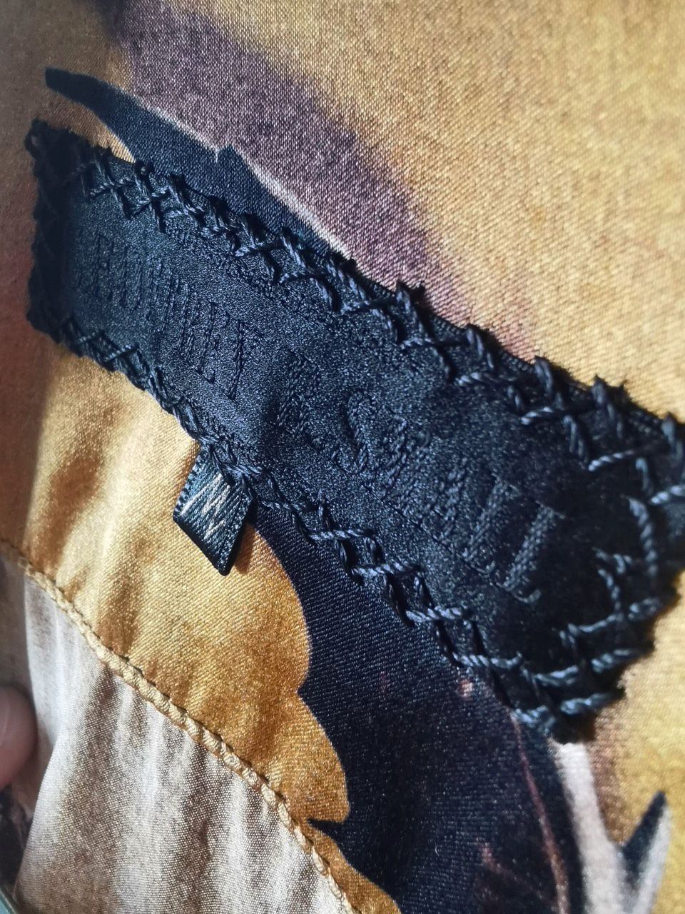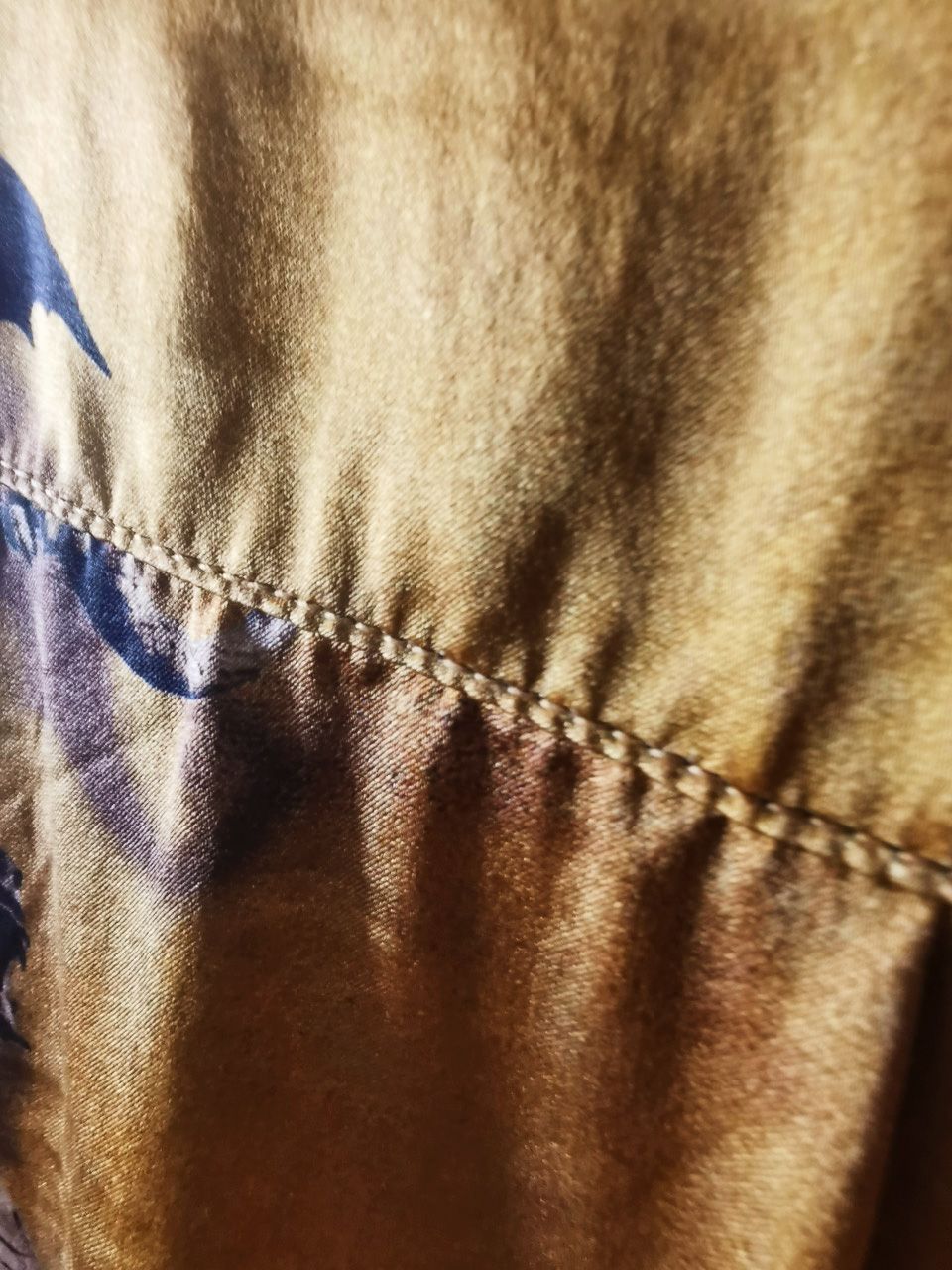 ...and cut using a luxurious pure silk 16-momme raso satin exclusive Darklands Berlin “Gryphons” print design developed by Estefania Campillo, and made only for us by the legendary Brenna family in Como, Italy--the world’s leading center for fine silk fabric creation--then specially washed and treated by hand in our world-famous GBS Superworkrooms at Cavarzere Venezia for extra aging, shaping, drape and softness...