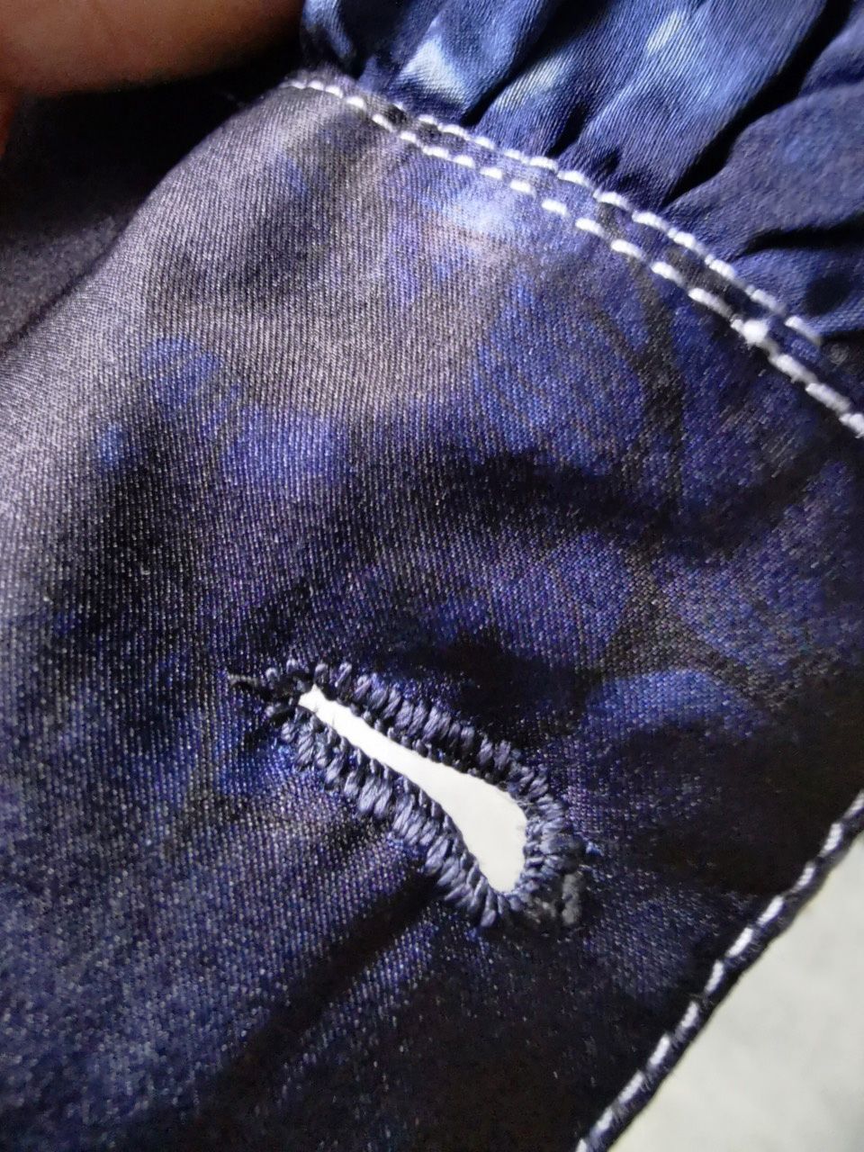 The design also features button-down welt pockets at the chest, amazing large rectangular shaped real mother-of-pearl button designs created exclusively for us by the world’s greatest living buttonmakers—Claudio and Cinzia Fontana in Parma, and no less than 11 of our signature real hand stitched buttonholes (that required 10-12 minutes to cut and sew each one, over 2 hours of expert and painstaking work on buttonholes and buttons for the single dress) in pure silk Bozzolo Reale Seta Milan threads...