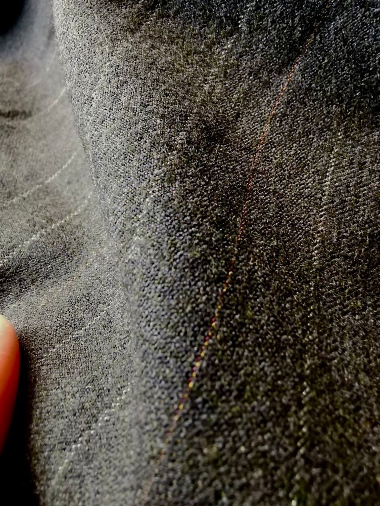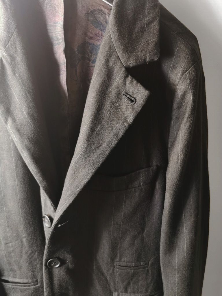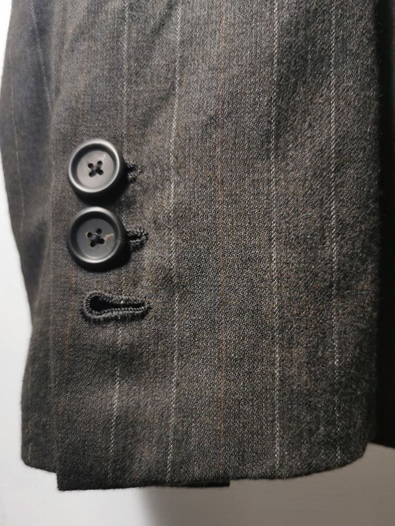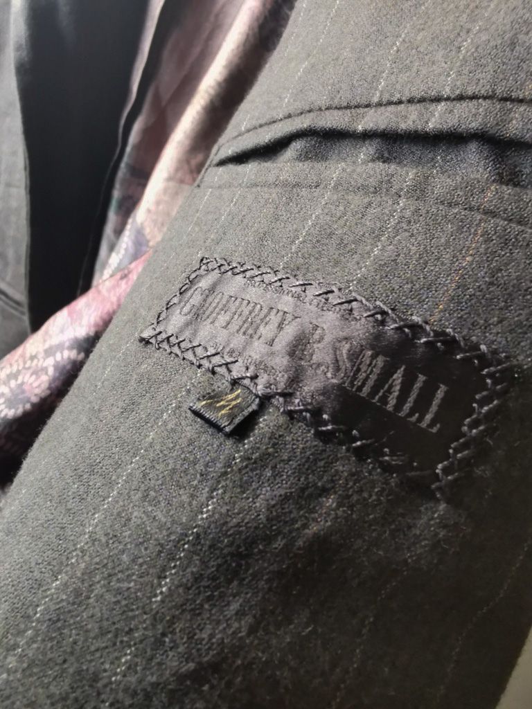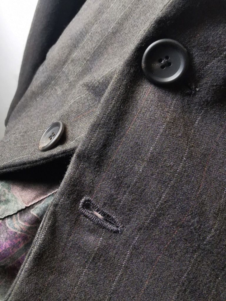 ...real working handmade surgeon's cuffs, hand-cut besom welt pockets (including a special exterior coin pocket) and tailored side vents, generous 2,5 centimeter seam allowances on major fitting seams that allow the jacket to be altered for long term wear and value, impeccably finished fully-lined interior...