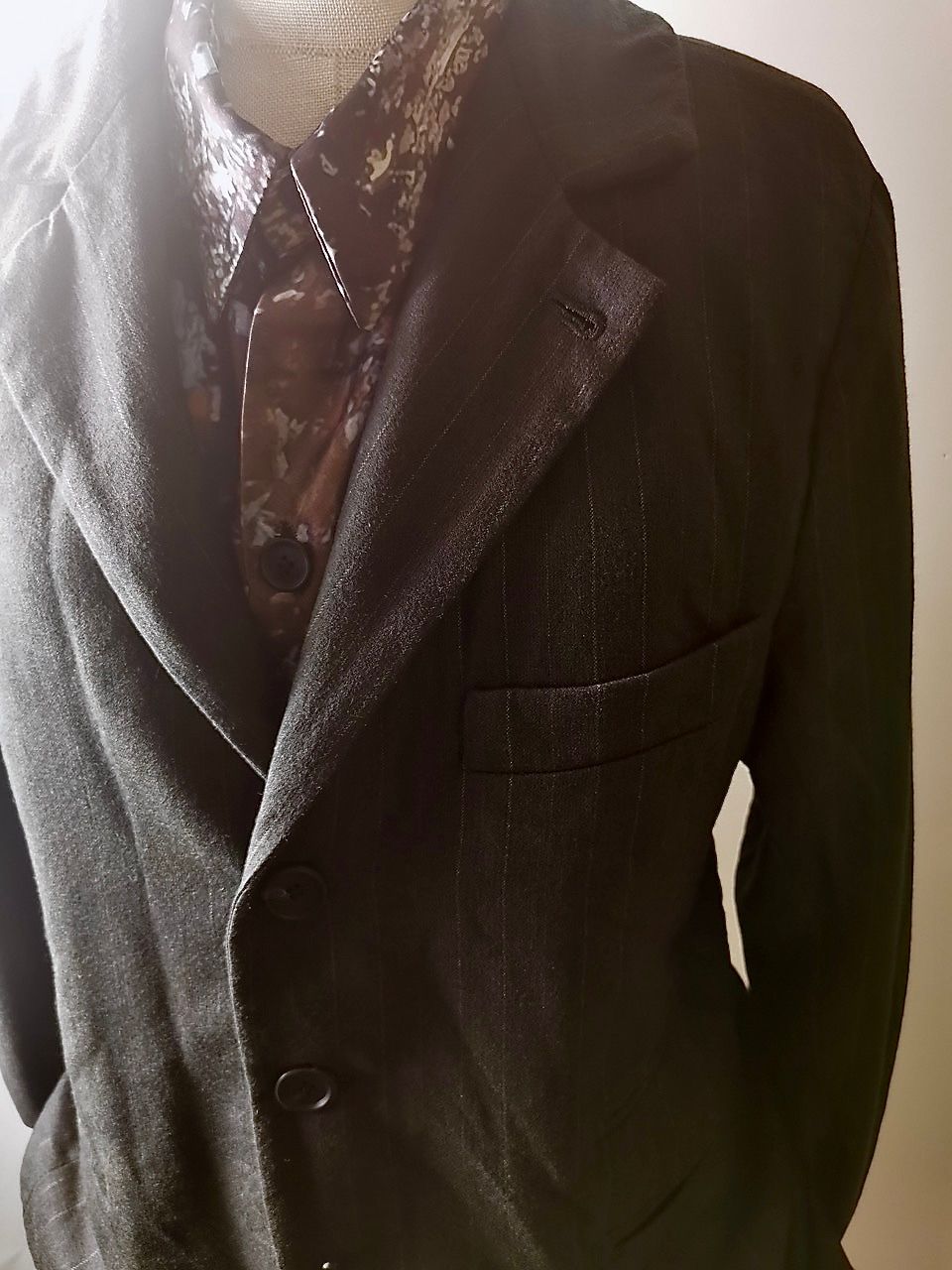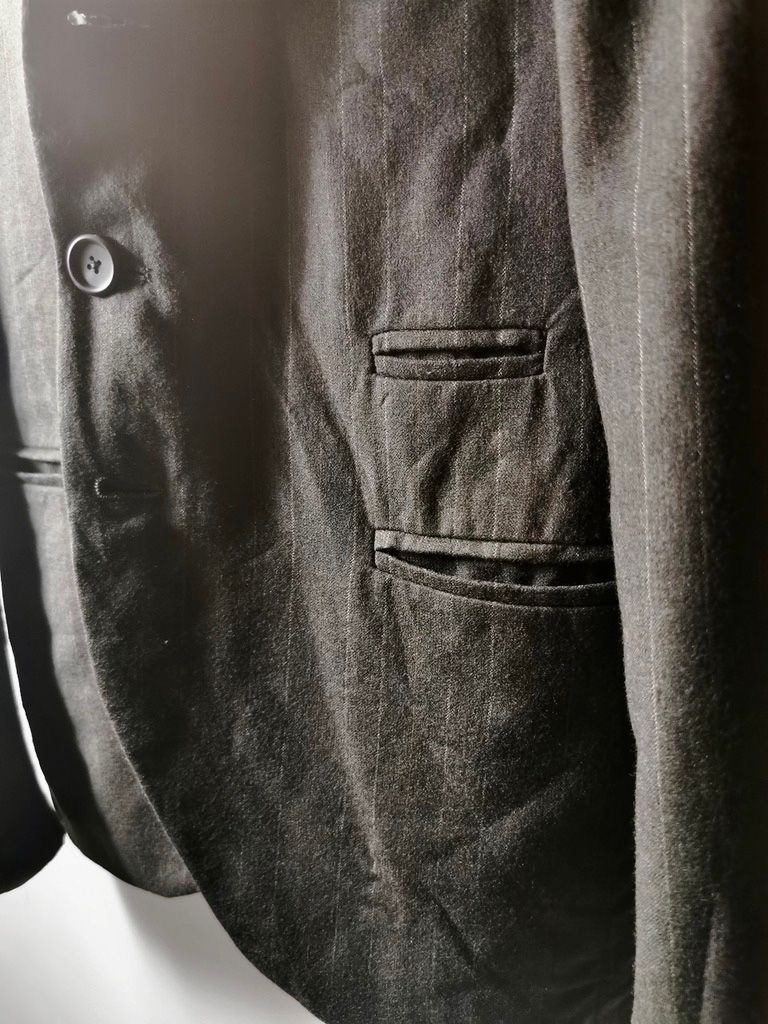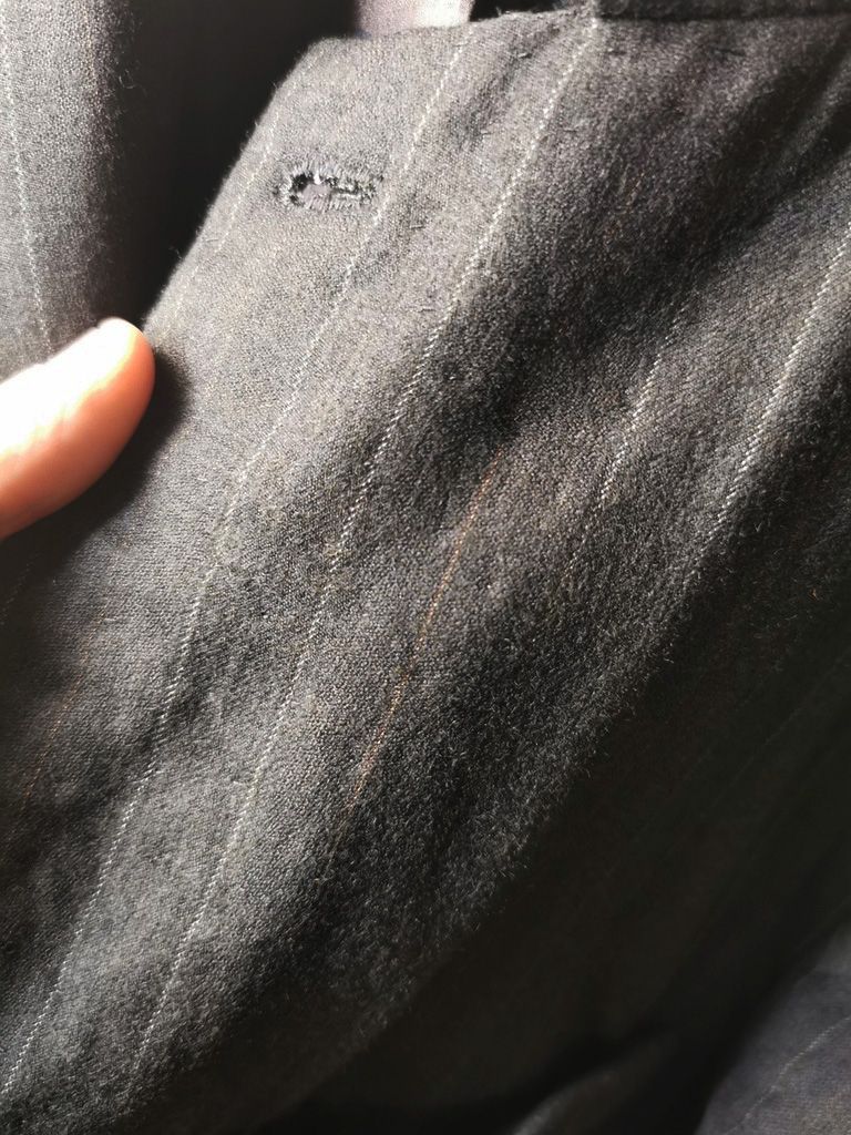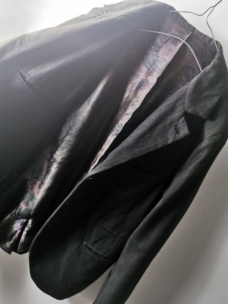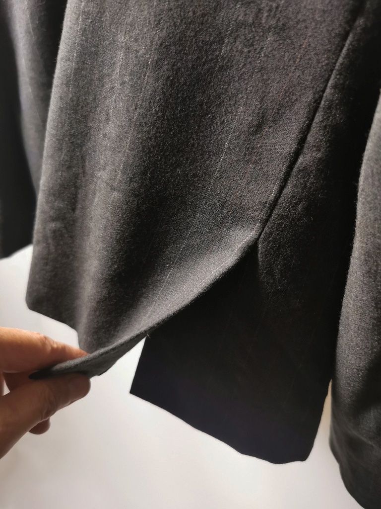 ...real working handmade surgeon's cuffs, hand-cut besom welt pockets (including a special exterior coin pocket) and tailored side vents, generous 2,5 centimeter seam allowances on major fitting seams that allow the jacket to be altered for long term wear and value, impeccably finished fully-lined interior...