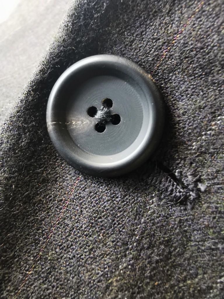 ...beautiful real horn buttons made for us by the world's greatest living buttonmakers--Claudio and Cinzia Fontana in Parma, Italy--and no less than 10 of our signature real hand-stitched buttonholes (that required 10-14 minutes to cut and sew each one) all done in pure silk Bozzolo Reale Seta Milan thread...