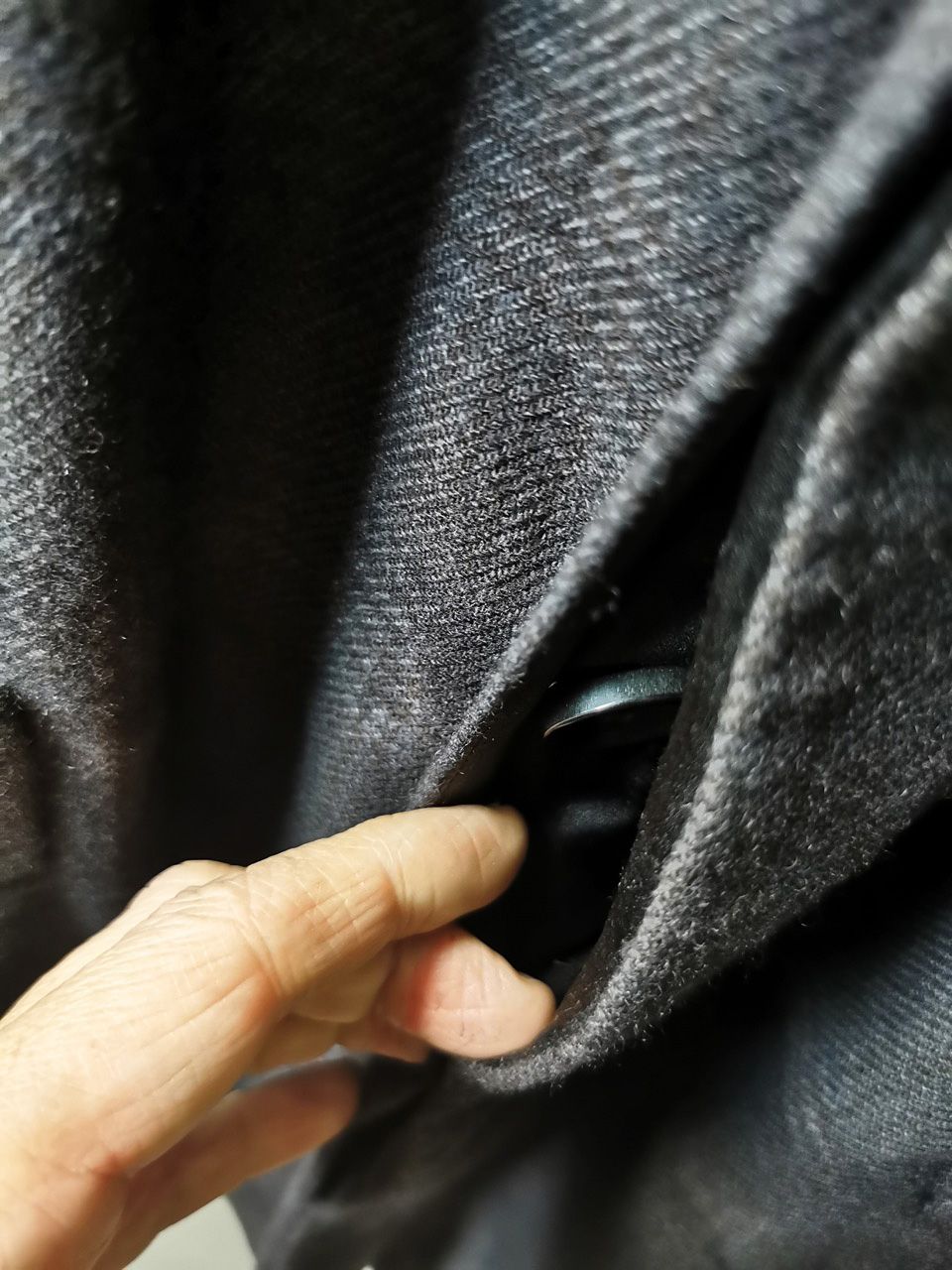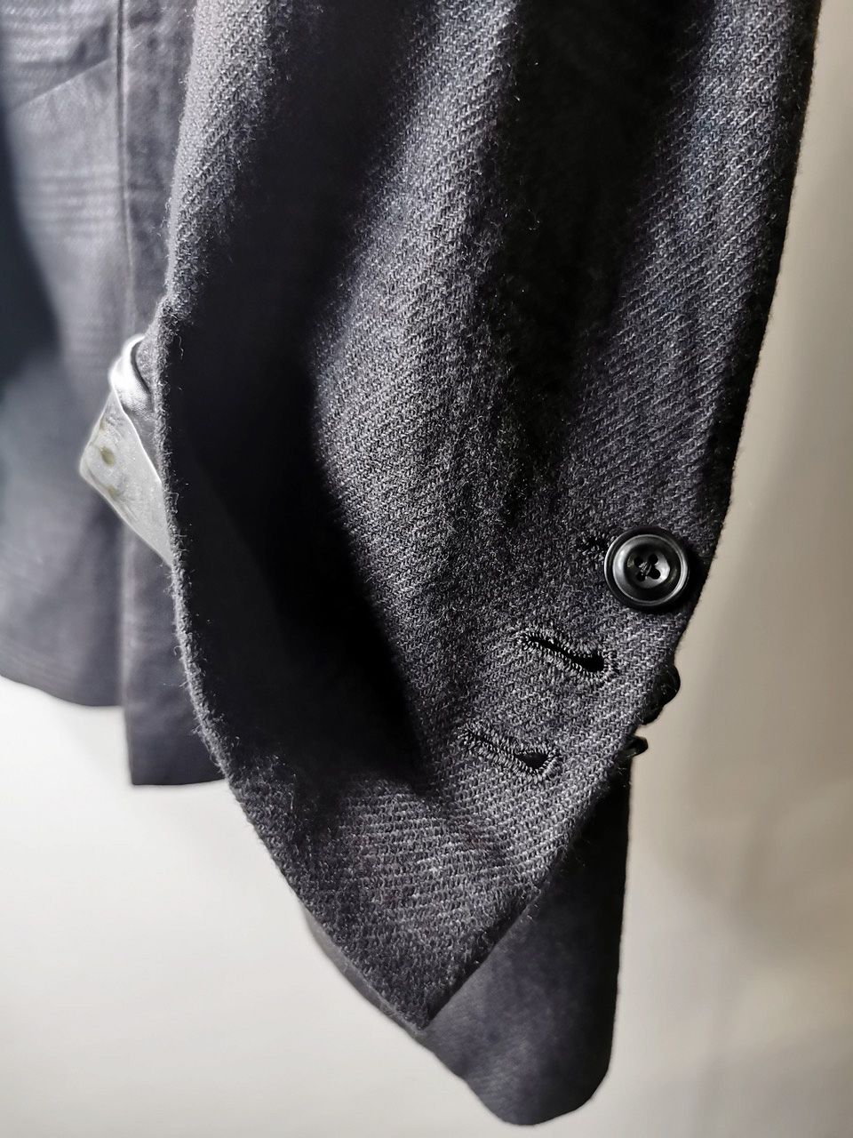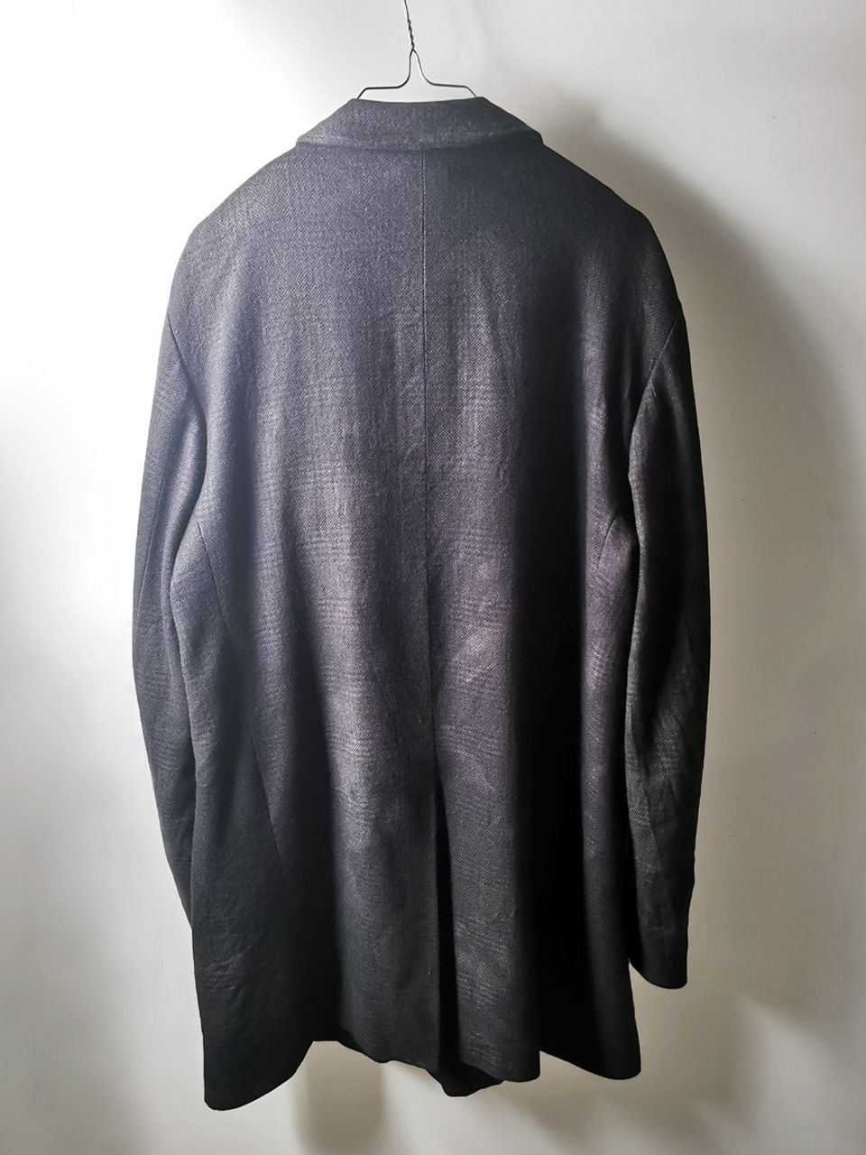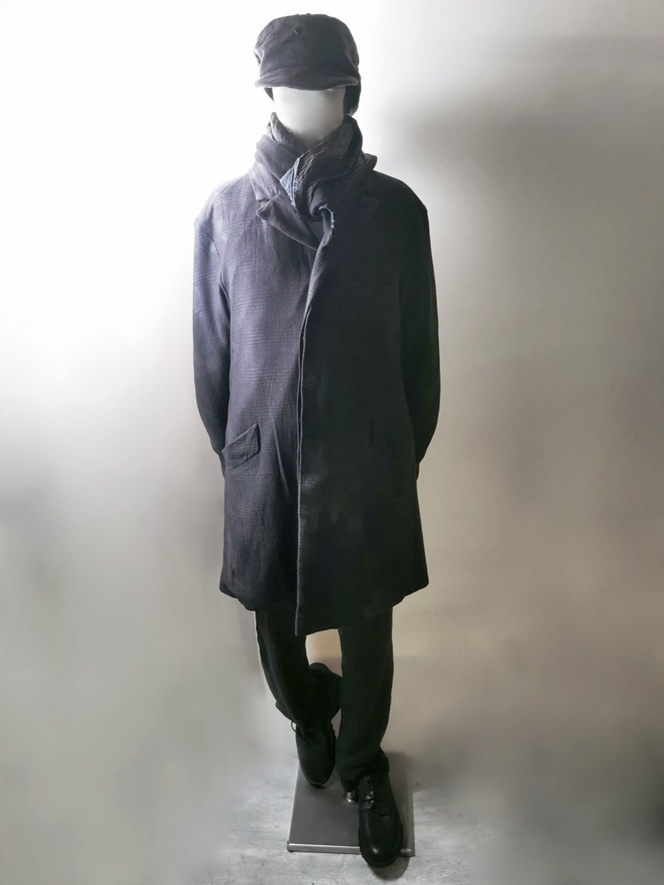 The WSC02 was made using an original single-breasted peak-lapelled fly-front car coat pattern from our "Witness" 2015 Paris Collection's extensive tailoring research...
