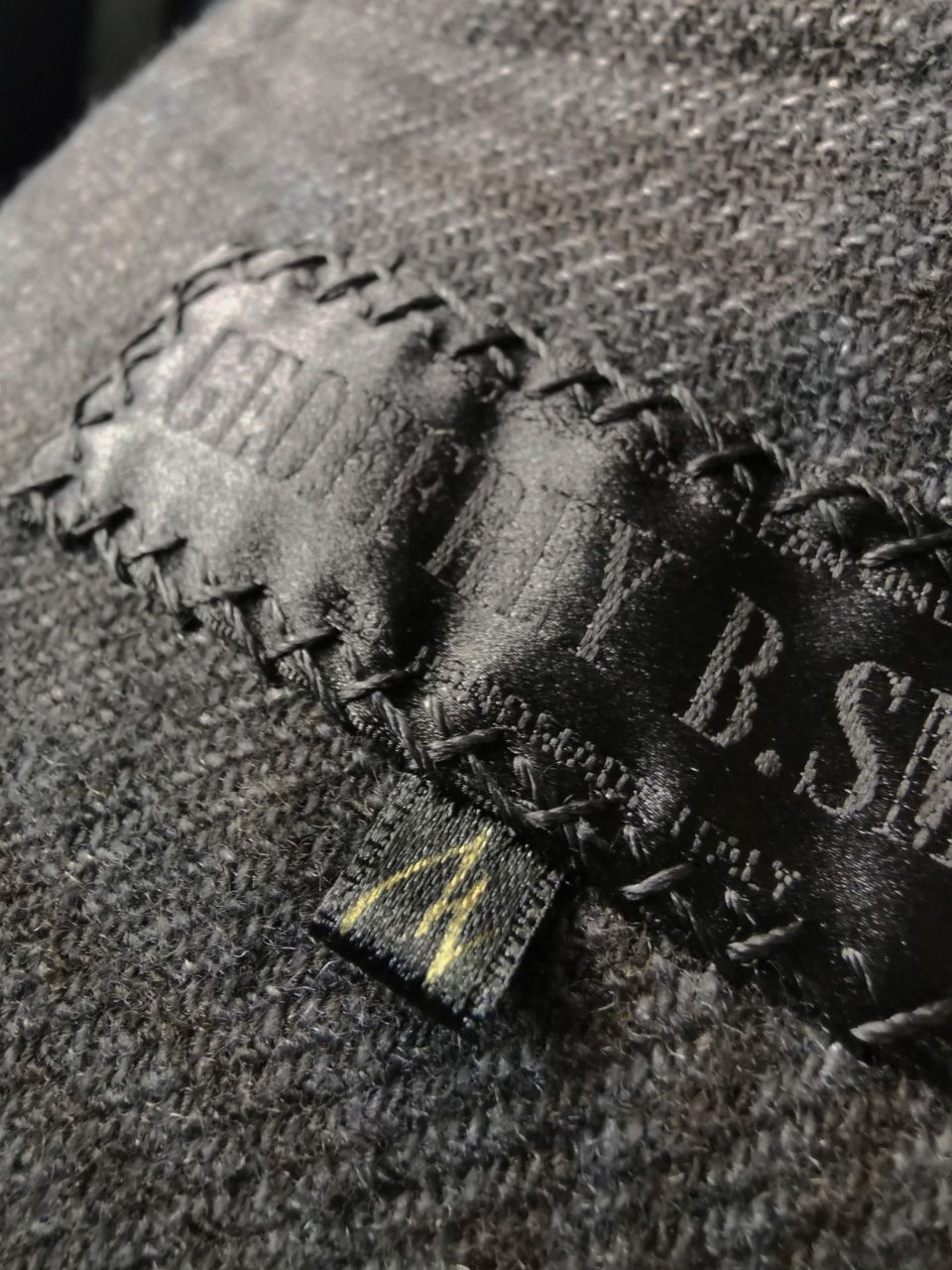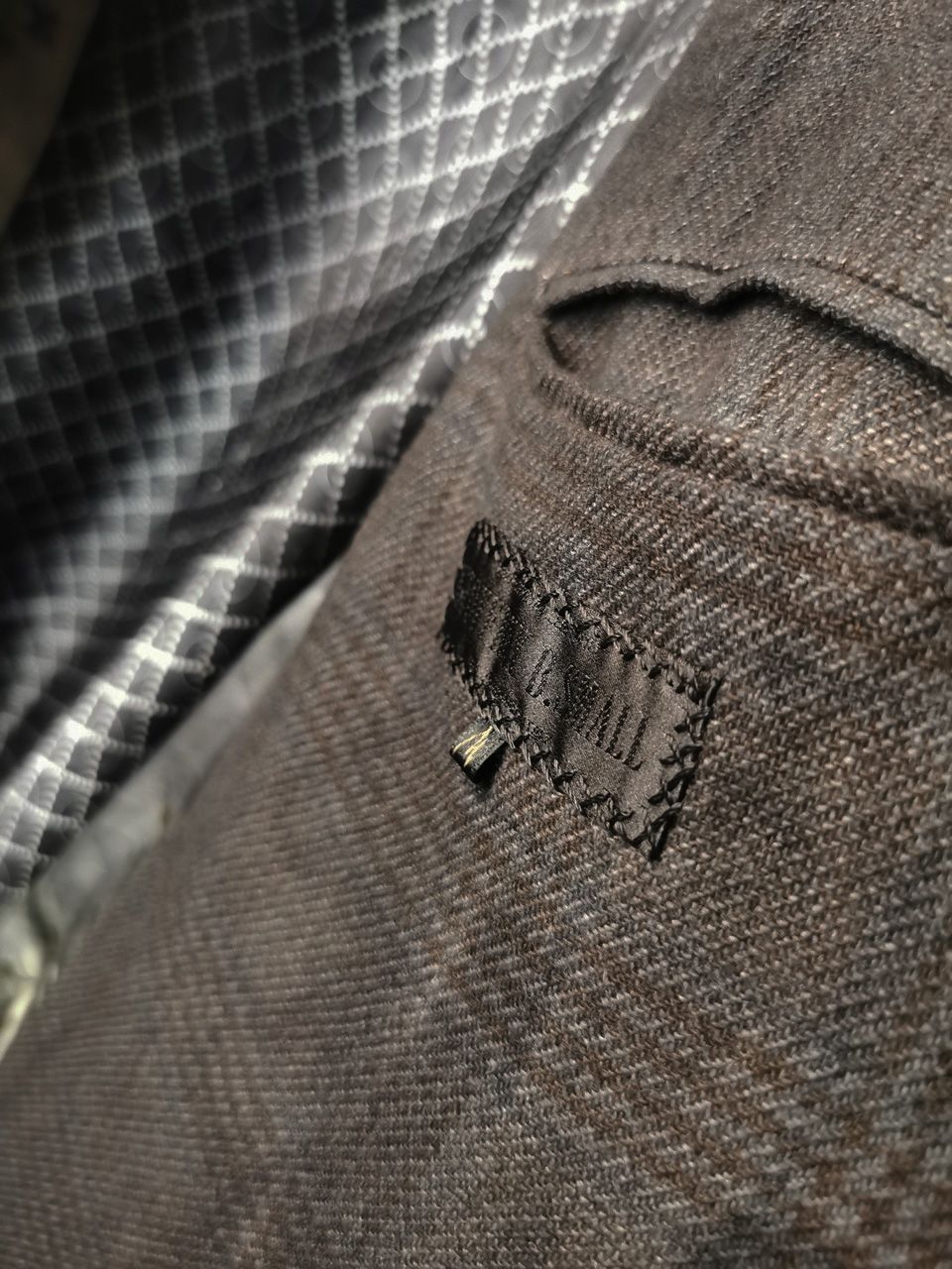 The piece also features our world leading pure silk label created exclusively for us by Mion SpA in Torreglia which is the first label in the luxury industry to completely eliminate plastic polyester yarns in it-- beautifully attached entirely by hand with pure silk threads.