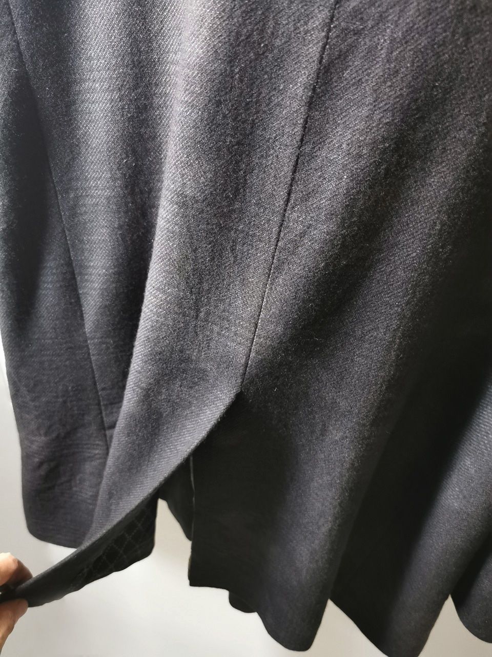 …generous 2,5 centimeter seam allowances on major fitting seams that allow the piece to be altered and let out for long term wear and service, all handsewn hemwork inside with hand cut center back vent,…