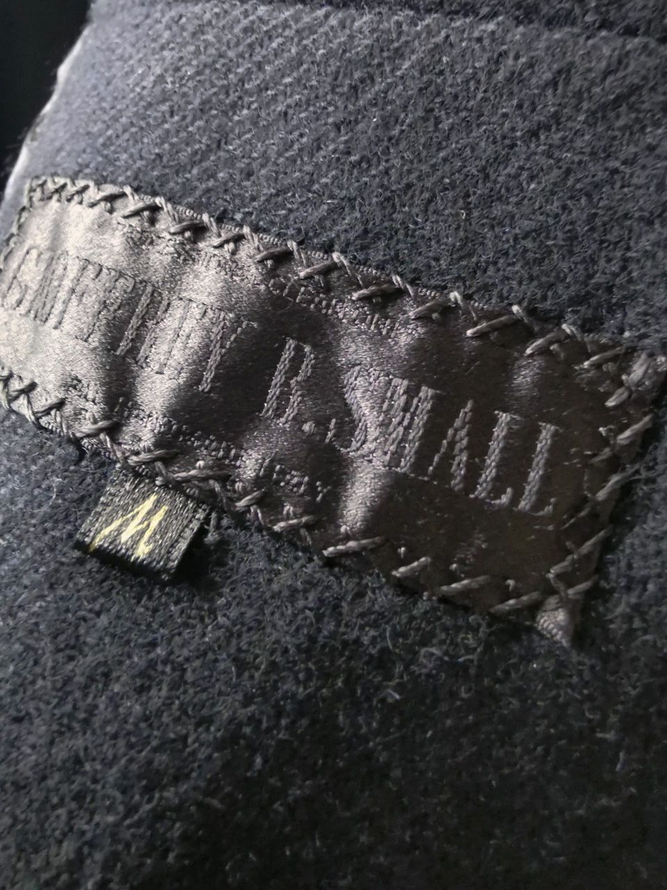The piece also features our world leading pure silk label created exclusively for us by Mion SpA in Torreglia which is the first label in the luxury industry to completely eliminate plastic polyester yarns in it-- beautifully attached entirely by hand with pure silk threads.