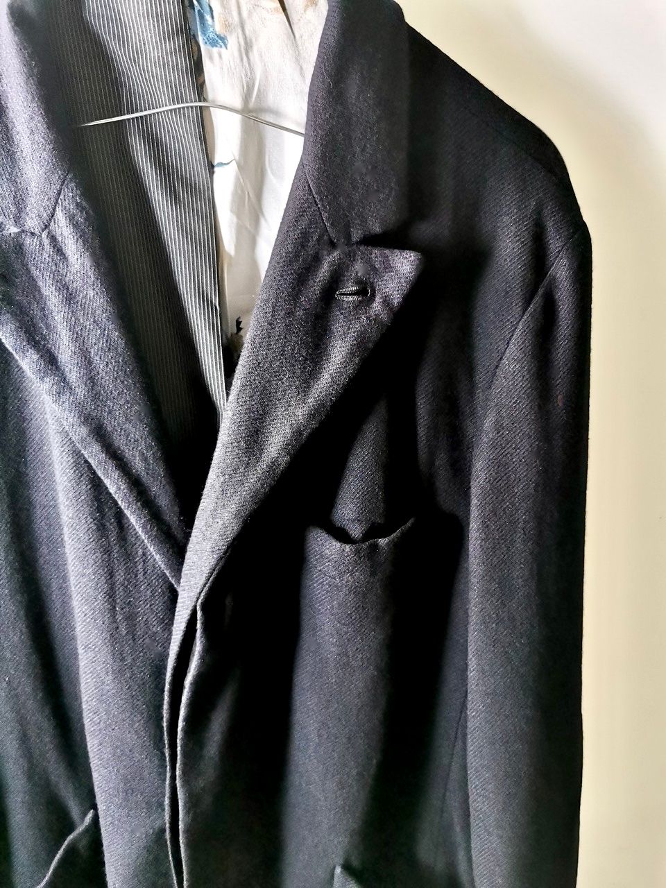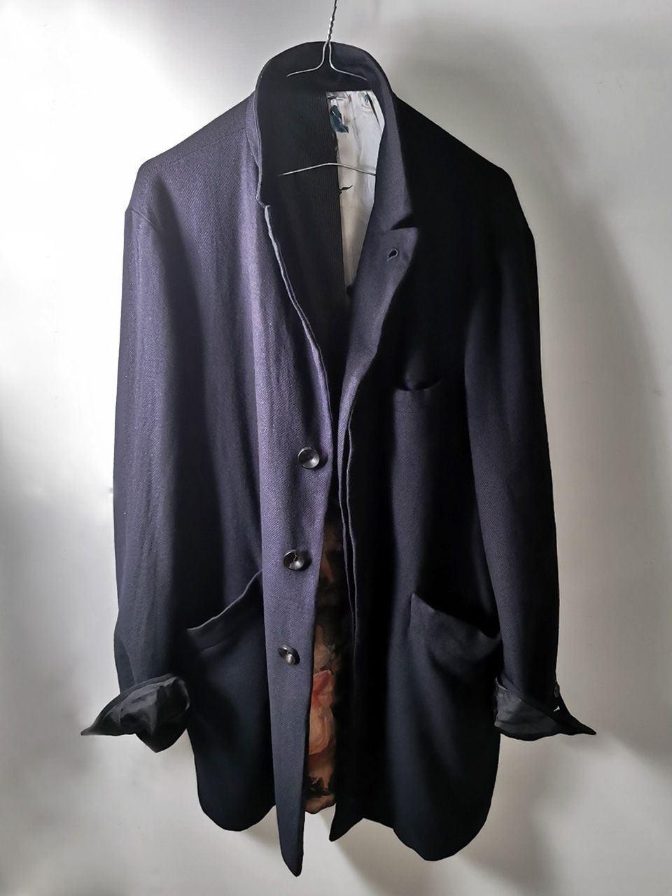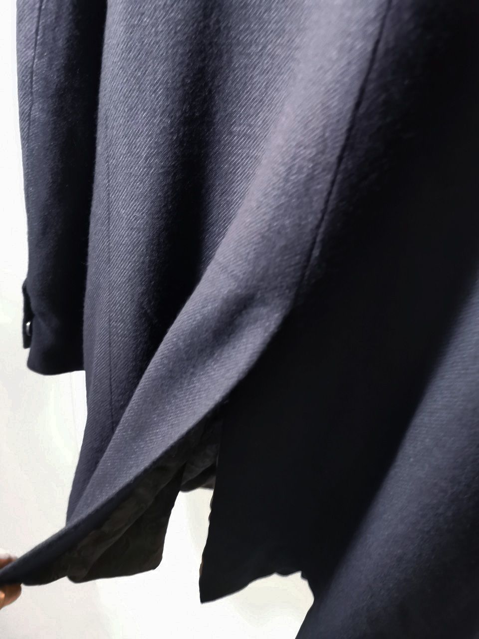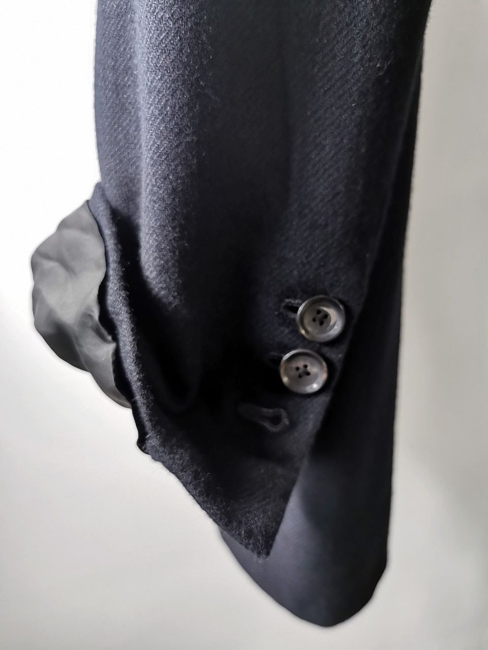 …generous 2,5 centimeter seam allowances on major fitting seams that allow the piece to be altered and let out for long term wear and service, all handsewn hemwork inside with hand cut center back vent…