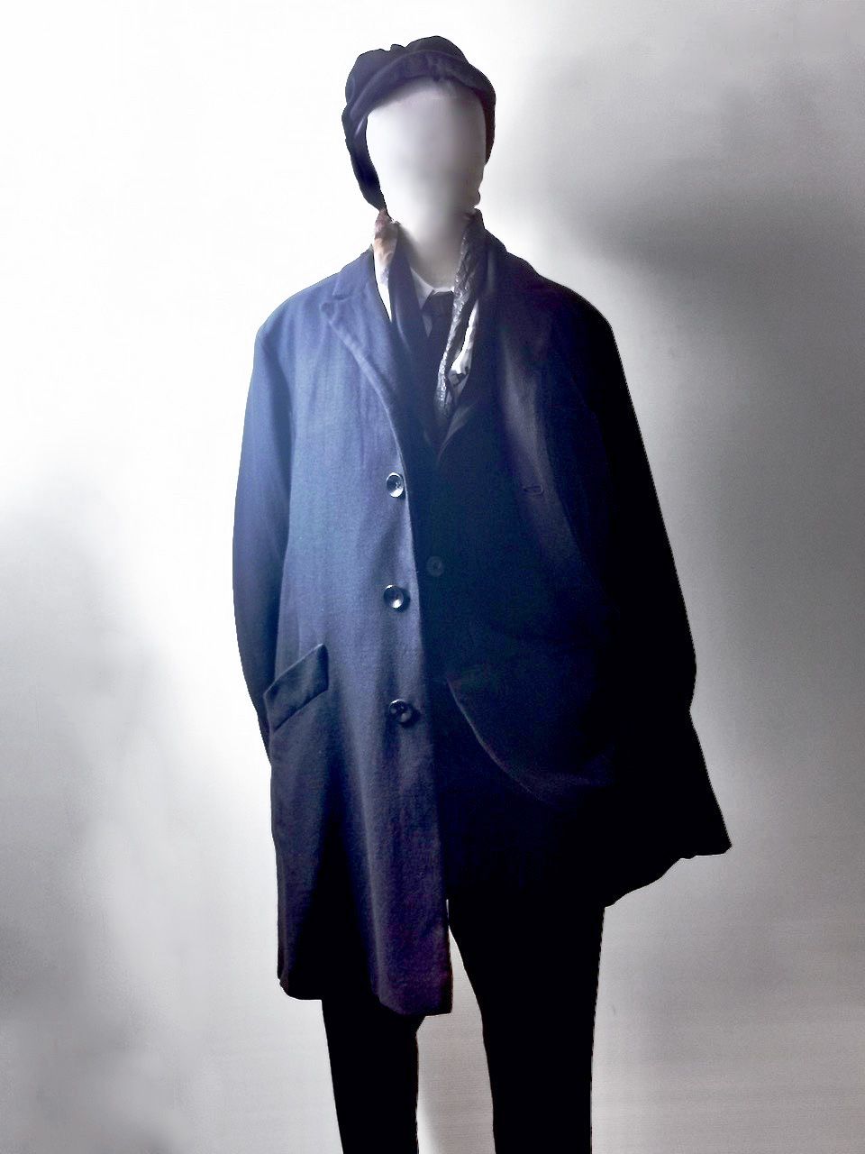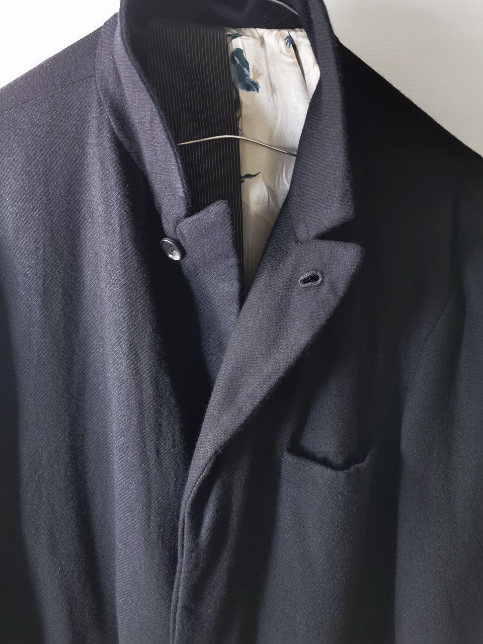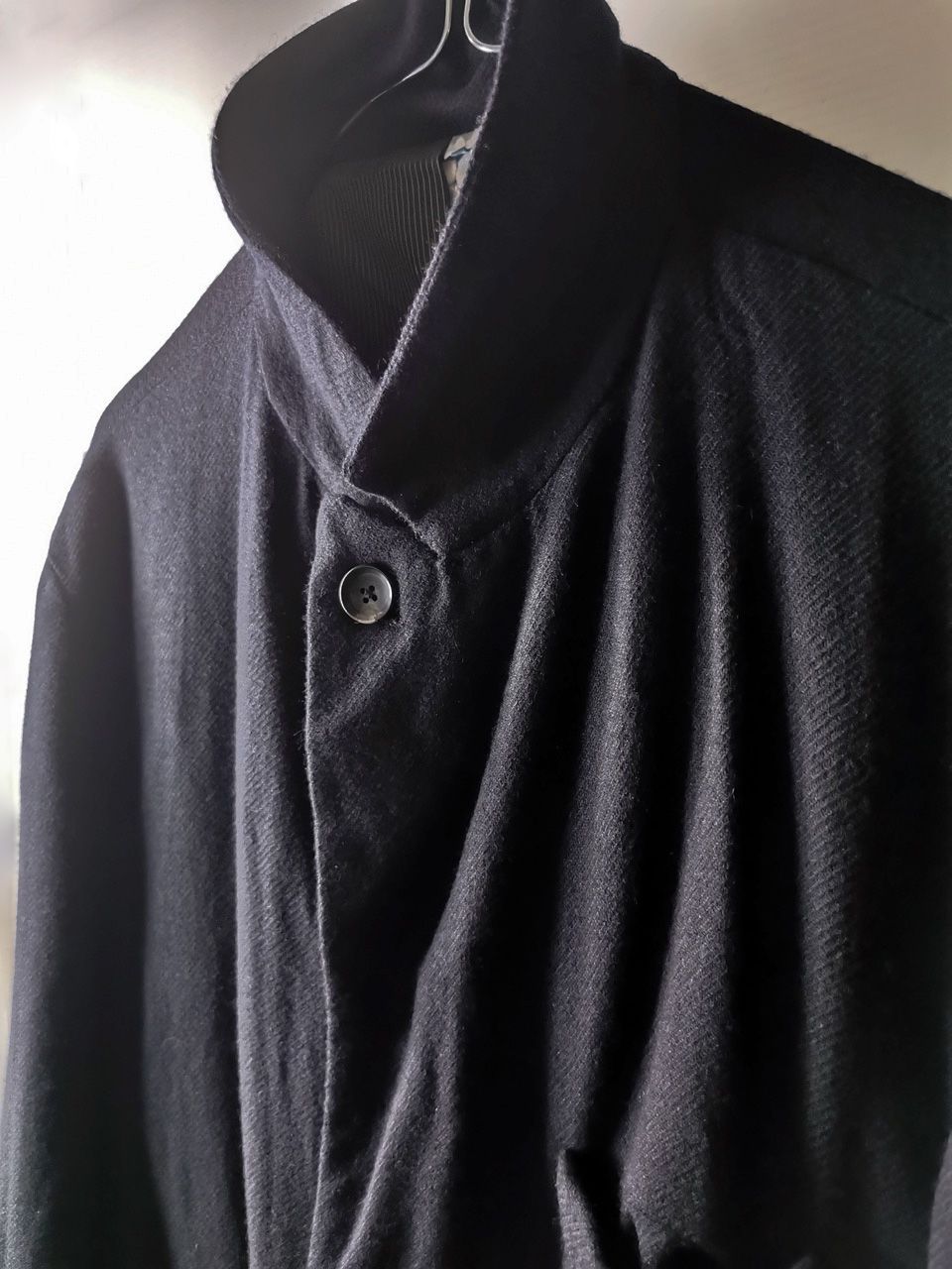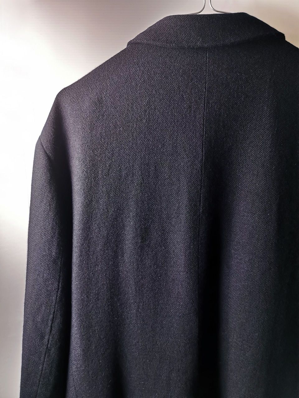 The WSC02 was made using an original single-breasted peak-lapelled fly-front car coat pattern from our "Witness" 2015 Paris Collection's extensive tailoring research...
