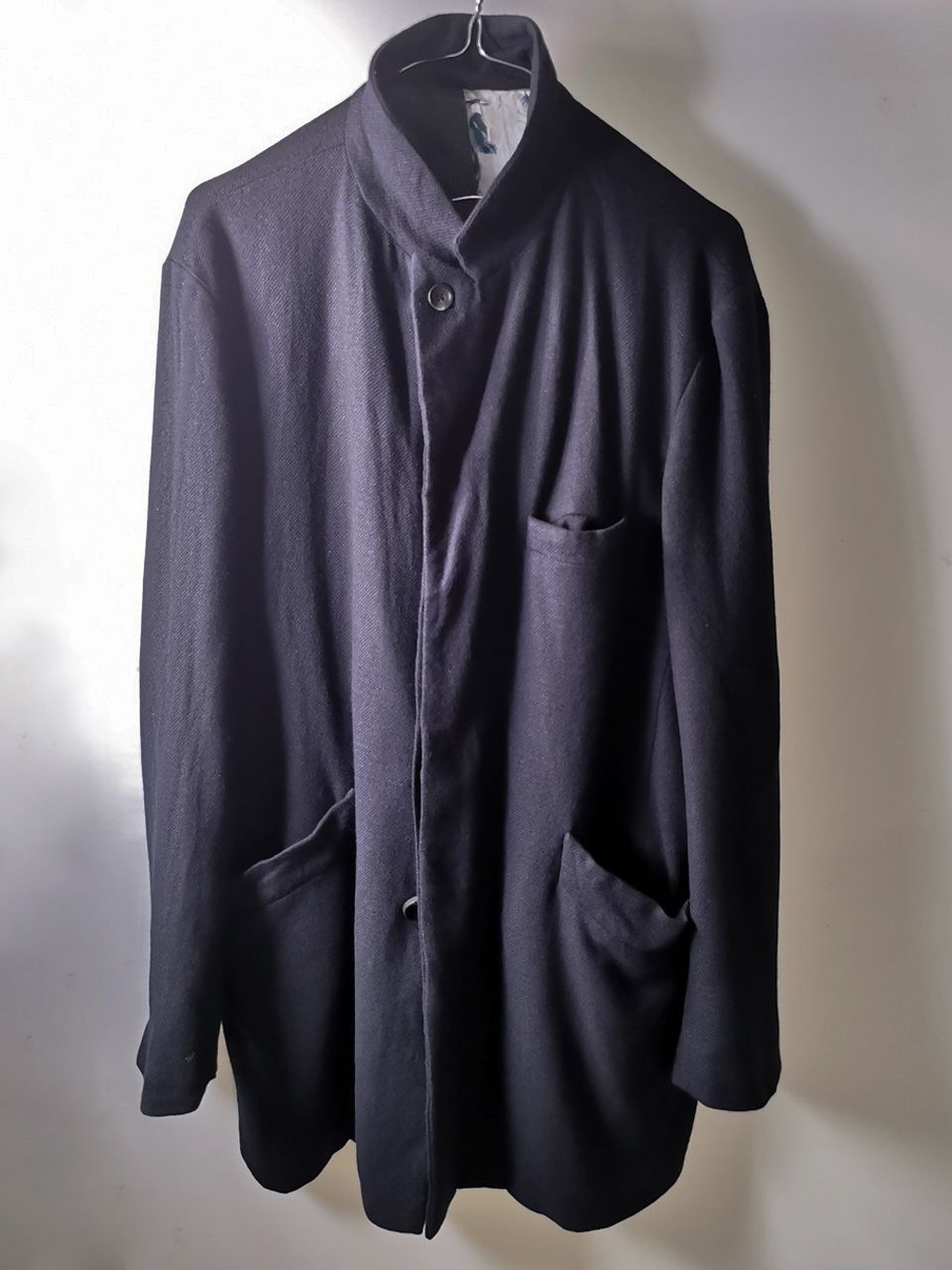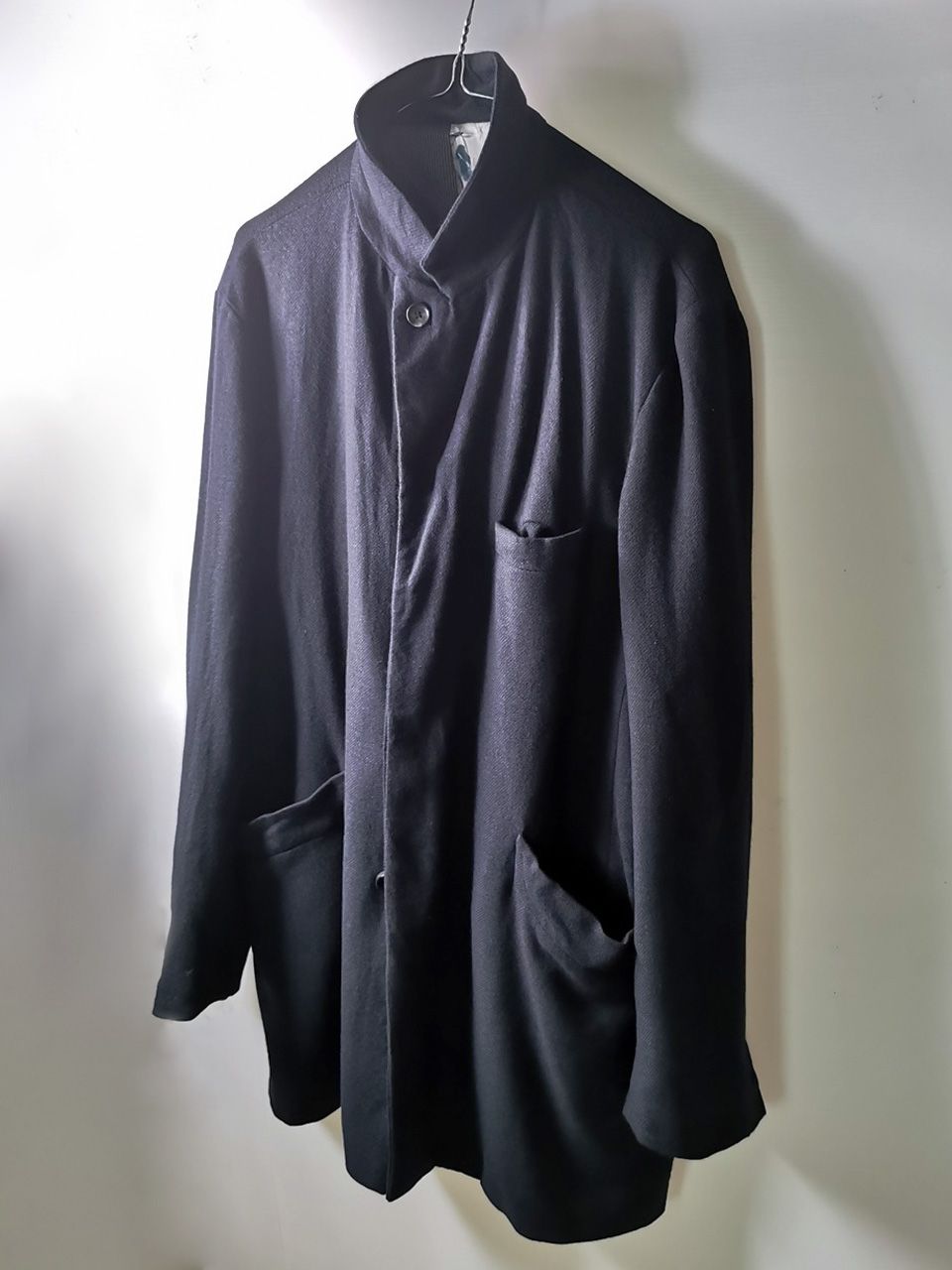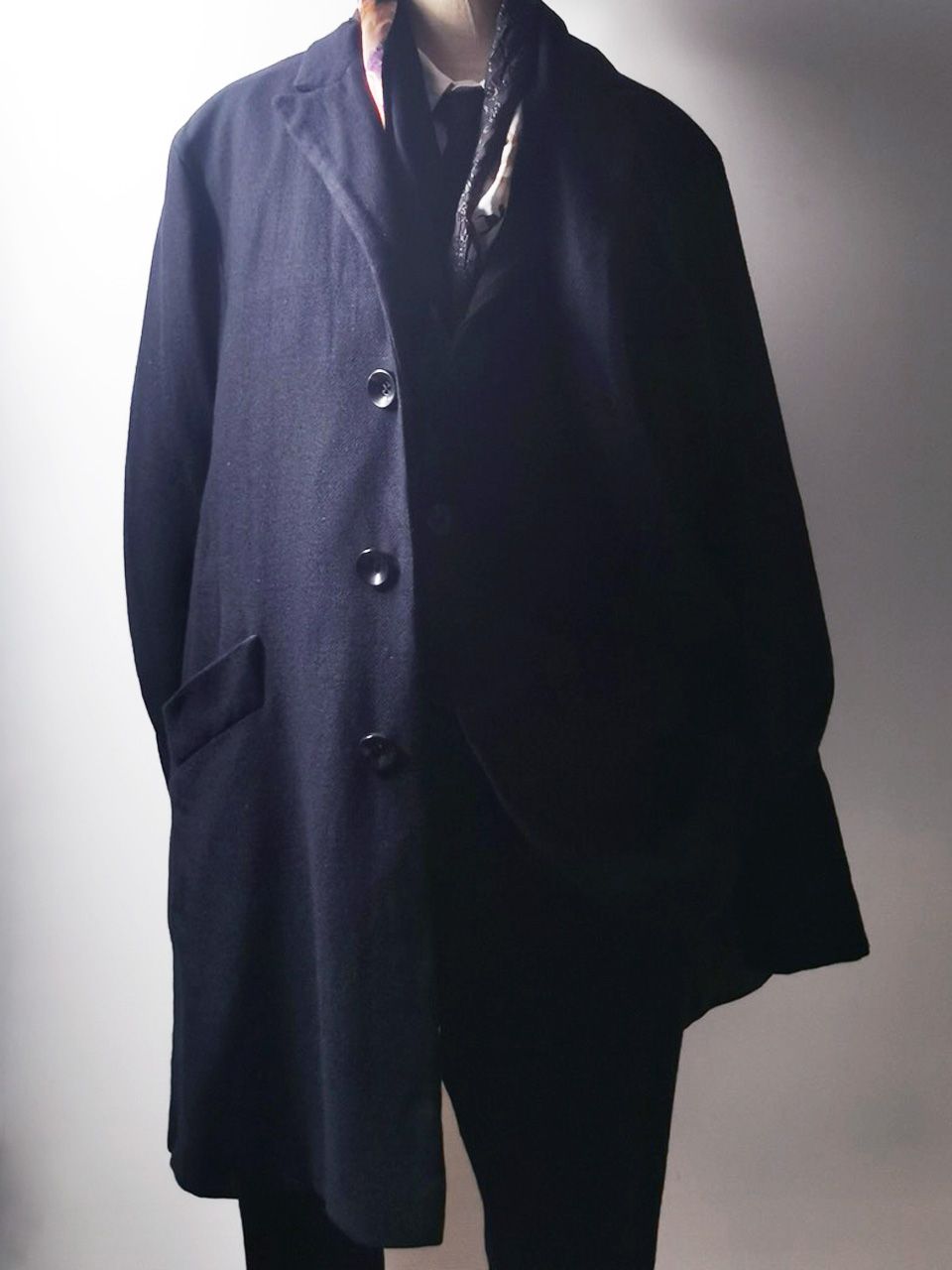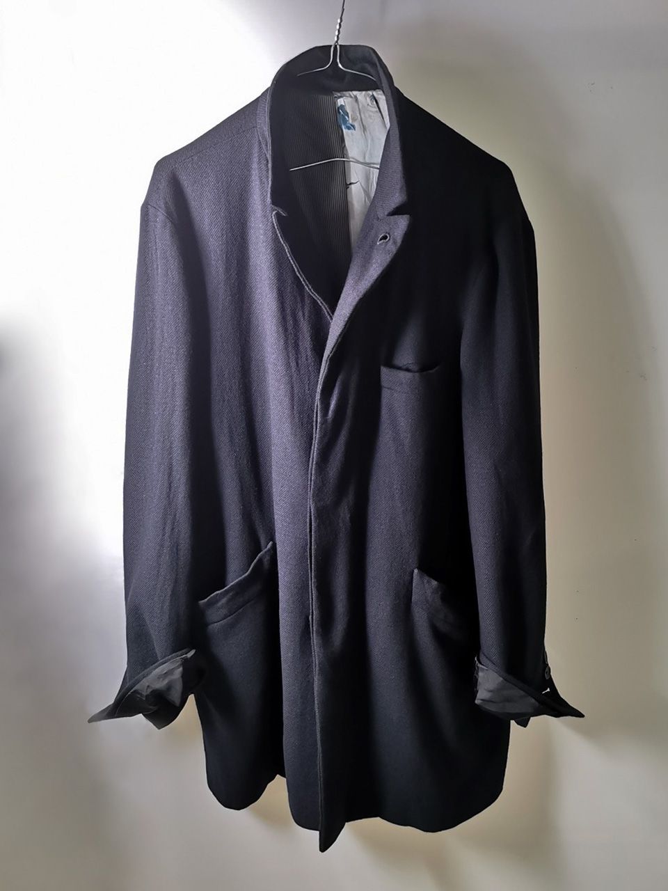 The WSC02 was made using an original single-breasted peak-lapelled fly-front car coat pattern from our "Witness" 2015 Paris Collection's extensive tailoring research...