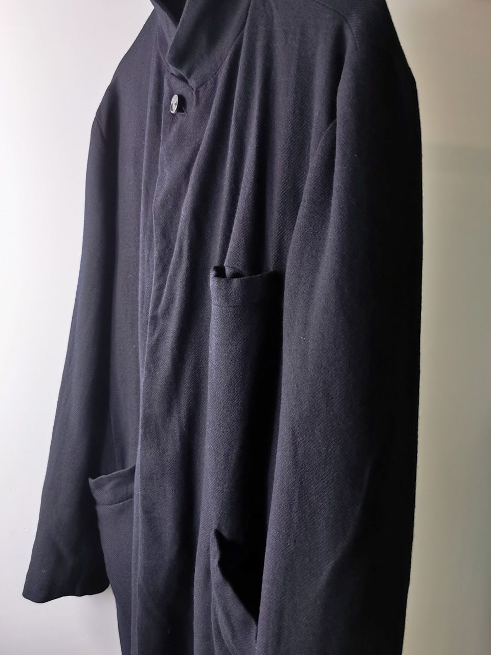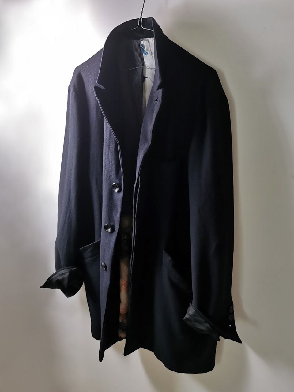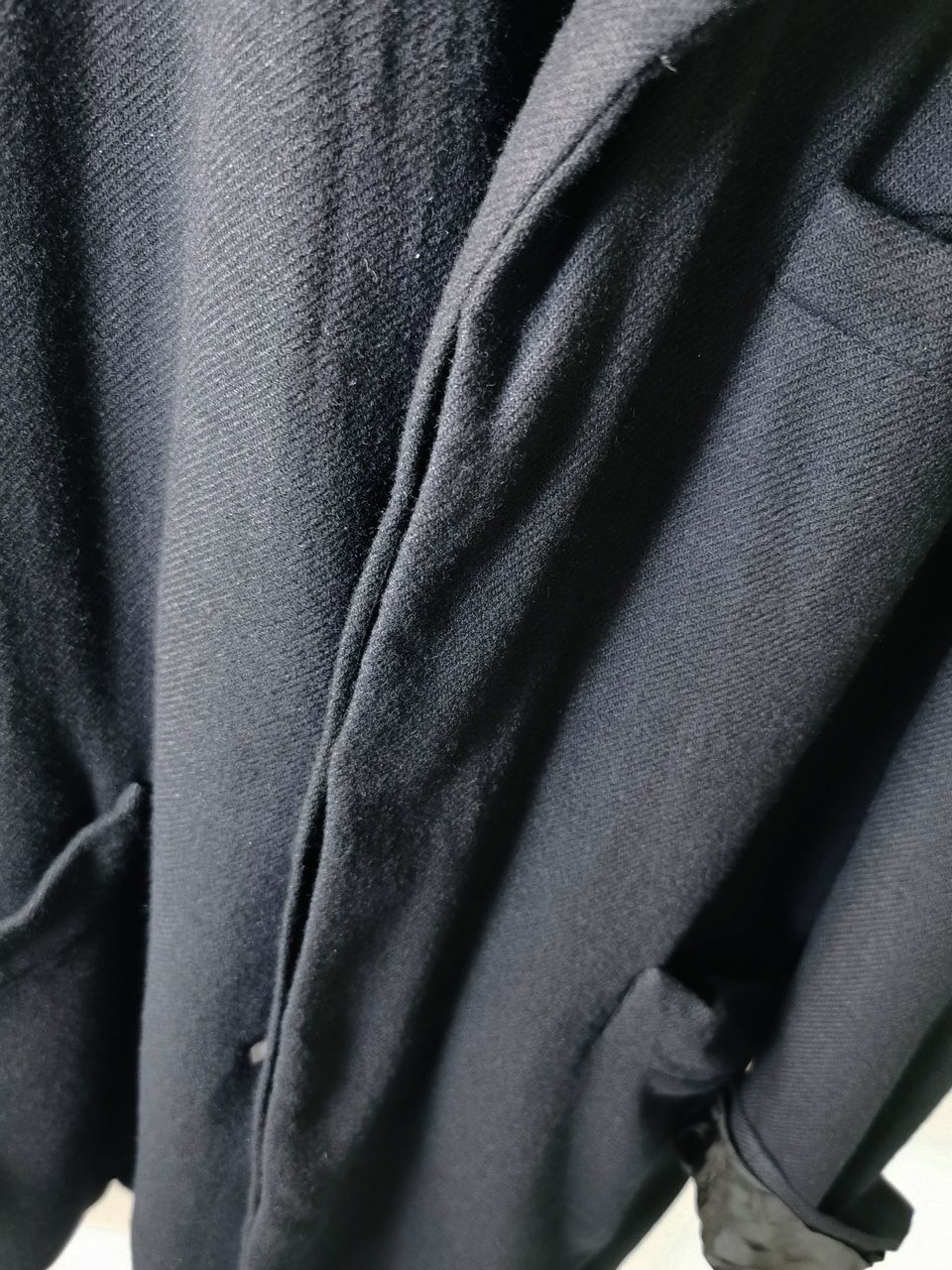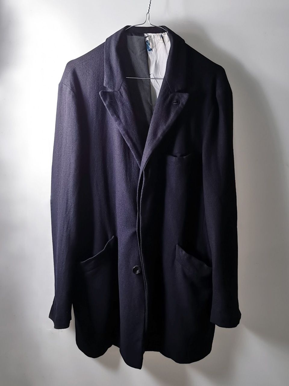 The WSC02 was made using an original single-breasted peak-lapelled fly-front car coat pattern from our "Witness" 2015 Paris Collection's extensive tailoring research...