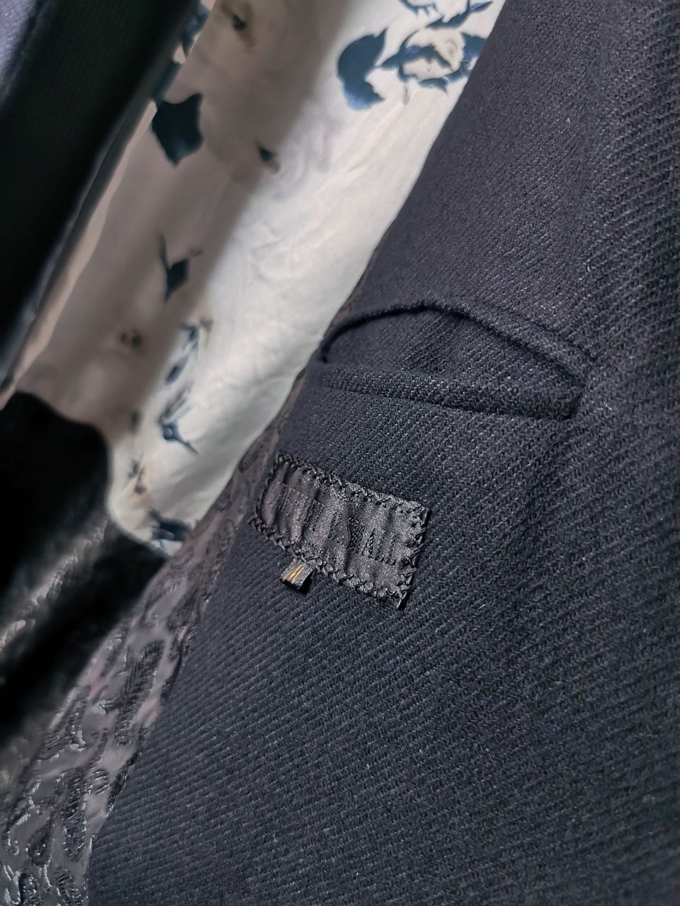 THIS special version of the super limited edition WSC02 hand made archive coat design jacket is one of only 2 pieces of its kind made by hand in the entire world, each created exclusively from our single-breasted peak-lapel fly-front 3-button coat pattern from our “Witness” 2015 Paris Collection’s extensive tailoring research, and cut using a superlux pure Alashan wollenspun cashmere suiting cloth woven only for us by the oldest still operating woolen mill in the world and the world’s most respected cashmere fabric makers--Fratelli Piacenza 1733 in Pollone, Biella, Italy--combined with an exquisite lining story composition of pure silk 16 momme raso satin exclusive “Rinascimento” Renaissance and White, blue and black floral prints made only for us by the legendary Brenna family in Como, Italy--the world's leading center for fine silk fabric creation—along with luxury jacquard paisley and striped weave viscosa lining fabric woven by Ezio Ghiringhelli in Varese and Tessitura Mauri in Como--then all specially multiple dyed, washed and treated by hand in our world-famous GBS Superworkrooms at Cavarzere Venezia using a series of processes that required over 26 hours of master work to achieve its special colors, patina effects, shaping, and incredible softness and drape. The design features impeccable invisible hand tailored fly-front silk-lined placket construction front, real hand-made working buttonhole surgeon’s sleeve cuffs, impeccable hand-cut and constructed besom and welt pockets throughout--each fully self-lined in the precious Alashan wollenspun cashmere fabric for maximum hand comfort and durability, carefully cut and sewn expert matching plaid tailoring work, beautifully finished fully-lined interior construction with hand-cut center back vent, generous 2,5 centimeter seam allowances on major fitting seams that allow the piece to be altered and let out for long term wear and service, all handsewn hemwork inside, an elegant button story with amazing deep-dished cross bottom button designs in real horn created only for us by the world’s greatest living buttonmakers--Claudio and Cinzia Fontana in Parma, Italy--and no less than 11 of our signature real hand-stitched buttonholes (each one required 10-14 minutes to cut and sew) in luxurious pure silk Bozzolo Reale Milano Seta thread…and is handsigned and numbered by the designer. The piece also features our world leading pure silk label created exclusively for us by Mion SpA in Torreglia which is the first label in the luxury industry to completely eliminate plastic polyester yarns in it-- beautifully attached entirely by hand with pure silk threads.